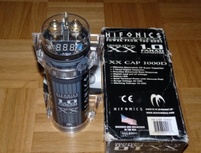 Zusätzlich habe ich hier noch einen Hifonics XX CAP 1000D Kondensator 1 Farad rumliegen. Neupreis lag bei 55 €, bei mir für 28 € + Versand.