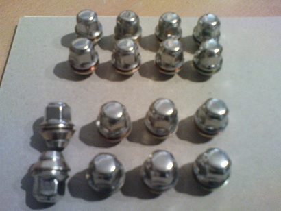 Verkaufe 16 Radmuttern mit Edelstahlkappen passend für 4-1/2Jx12 Alufelgen , 6Jx13 Sportpack Felgen und Revolution Modern Line.