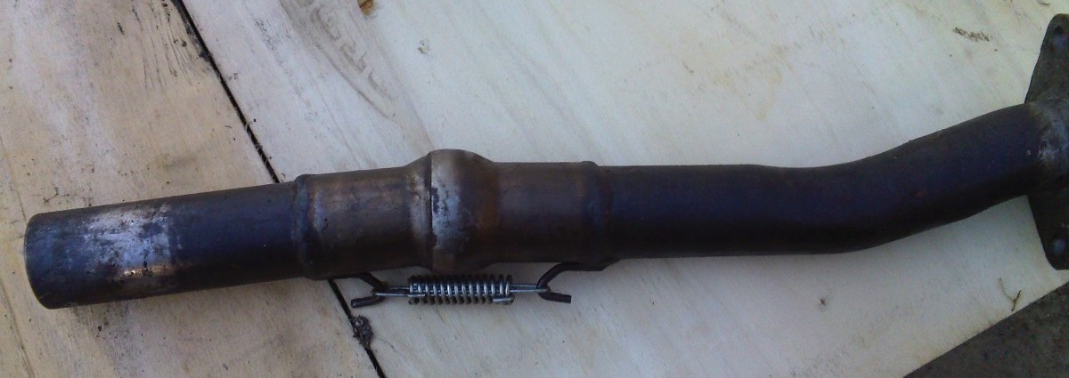 Auspuff Anschluss-Stück/ Verbindungsstück mit Bewegungselement, war für ursprünglich für meinen SPI. Habe es vor Ewigkeiten (vor ca. 4 Jahren) neu gekauft und nie eingebaut, nun gibt es den SPI nicht mehr. Es hat sich Flugrost auf ihm niedergelassen, diesen habe ich mit Mike Sanders- Fett gestoppt. Also einmal saubermachen vorm Einbau. Auf den Fotos sollte man genauere Details erkennen.