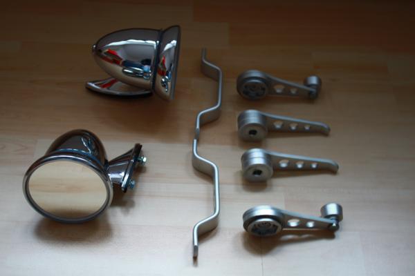 ich habe noch ein paar Spiegel über(wurden noch nie verbaut). Außerdem einen guten Satz Griffe, Kurbeln wie auf den Bildern zu sehen ist.