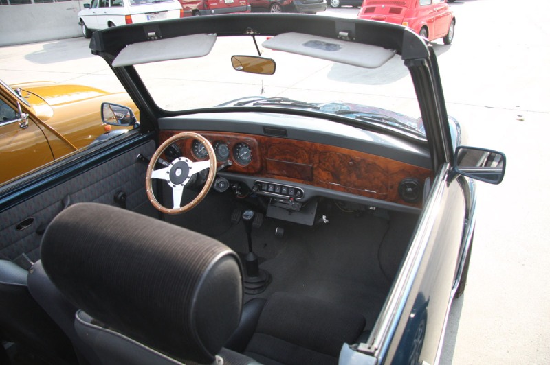 Einzigartiger Oldtimer Cabrio Umbau mit vielen eingetragenen Extras: Vollständig einstellbares Fahrwerk, einstellbare AVO Stoßdämpfer, Lenkradtieferlegung, Wolfrace Alufelgen mit Yokohama A032 Bereifung, MiniSport 4 Kolben Alusättel in Verbindung mit 7,9" innenbelüfteten geschlitzten Scheiben sorgen für extreme Verzögerung, der Motor wurde mit einem Stage1 Kit mit dezentem 2-Topf RC-40 Auspuff von seinen Einschnürungen befreit.