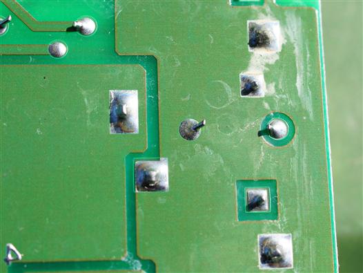 Zwischen Lötpunkten liegt eine grauweiße Verbindungsfläche. Werd ich mal entfernen, nicht daß da irgendwelche Kriechströme entlang schleichen.