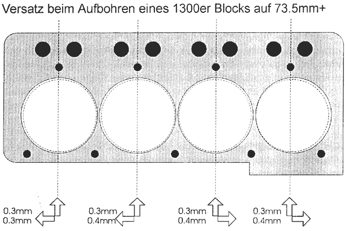 Beachten musst Du allerdings, dass nicht mehr wie 1mm pro Bohrvorgang gemacht werden. Auch muss bei diesem Maß außermittig gebohrt werden. Aber ich denke, die Feinheiten weist Du bereits, wenn nicht, poste nochmal hier, dann kann ich Dir genaue Bohranweisungen für Deinen Motorenbauer geben.