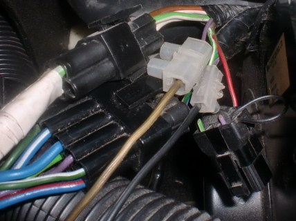 Ein Rotes Kabel kommt dort auch raus. Dies geht an einen Steckverbinder wo wohl das grün/weiße und das lila Kabel abgeschnitten wurden?! Dieser Verbinder ist aber nirgendwo dran!