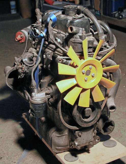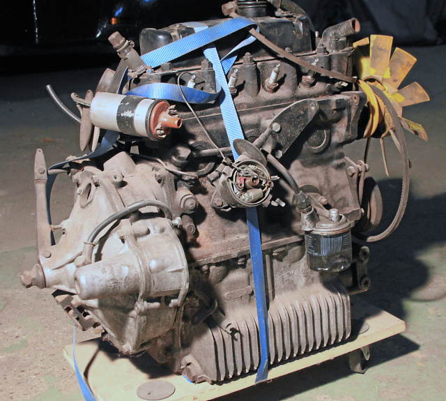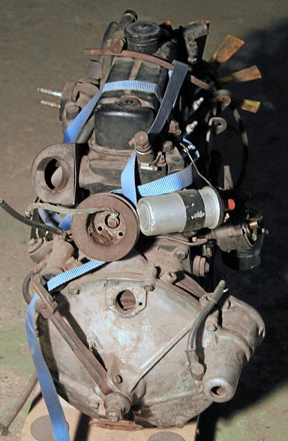 Es ist ein 10H-Motor aus einem 79er Special incl. Getriebe und den auf den Fotos ersichtlichen Anbauteilen, Laufleistung leider unbekannt. Bis zum Ausbau vor etlichen Jahren lief er laut Aussage des Verkäufers einwandfrei (wurde wohl durch einen 1300er ersetzt), er lässt sich von Hand frei durchdrehen.