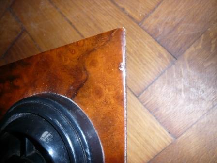 Habe nun ein Armaturenbrett mit Mitteltacho... Der Klarlack hat bis auf einen kleinen Riss an der Tachoumrandung und einer wirklich kleinen Absplitterung (sieht aus wie ein Steinschlag) unterhalb der rechten Lüftungsdüse keine Beschädigungen. Leider hat sich die oberste Holzschicht des brettes an ein paar Stellen am Rand angelöst. Dadurch hat man leichte Wellen in der Oberfläche. Mit ein wenig Holzleim und Schraubzwingen zu richten. Habe aber leider keine Zeit dafür.