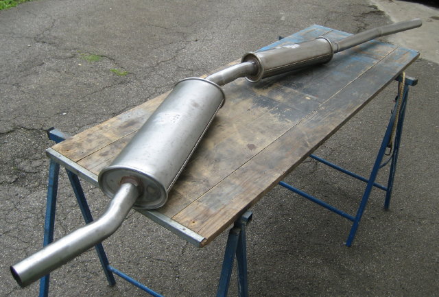 1. Ein Zwei Topf RC40 Anlage komplett ab LCB am Stück geschweißt für Mini`s bis 1991, also OHNE KAT - mit einen Stempel von 1996 ist aber komplett rostfrei. Ich habe es vor 2 Jahre gekauft und nur mit Stahlwolle aufgefrischt.