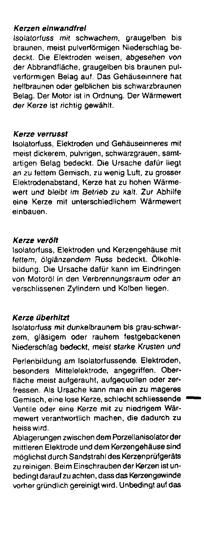 In meinem MINI (93er British Open) sind anscheinend Glühkerzen eingebaut. Anders weiß ich diese schneeweißen Zündelemente nicht mehr zu bezeichnen. (Bosch WR7DC, wie in der Liste vorgesehen). Wie kommst zu diesem weißen Belag ? Ist der Wärmewert wirklich so verkehrt, oder stimmt was mit der Einspritzanlage nicht ? Im schiebebetrieb gibt mein MINI auch ein dolles Brabbeln (Fehlzündungen?) von sich, klingt geil, aber der Wagen "beschleunigt" wie ein Stück Blei.