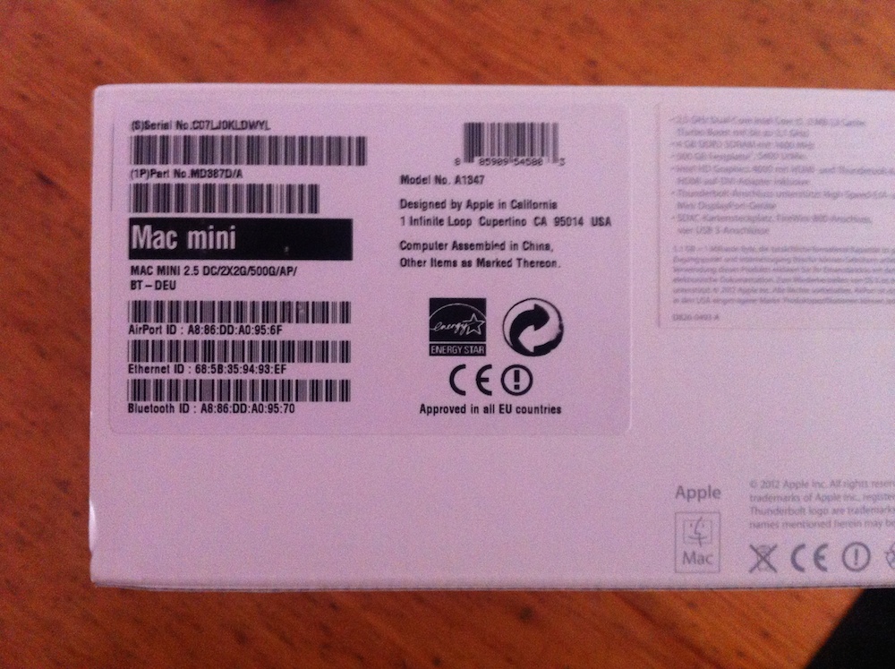 Der Mac Mini wurde im Oktober 2013 gekauft (Rechnung vorhanden) und ist aktualisiert auf das