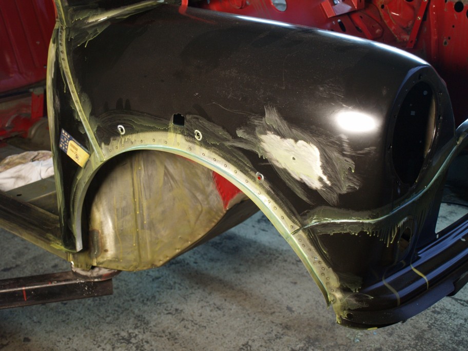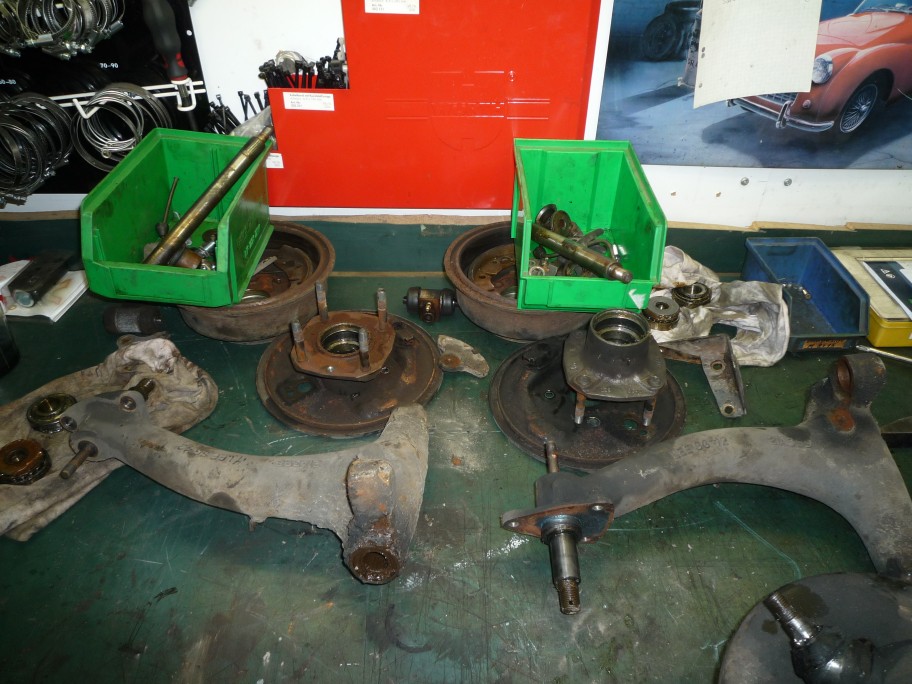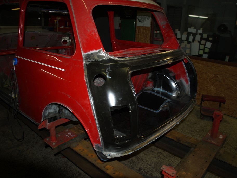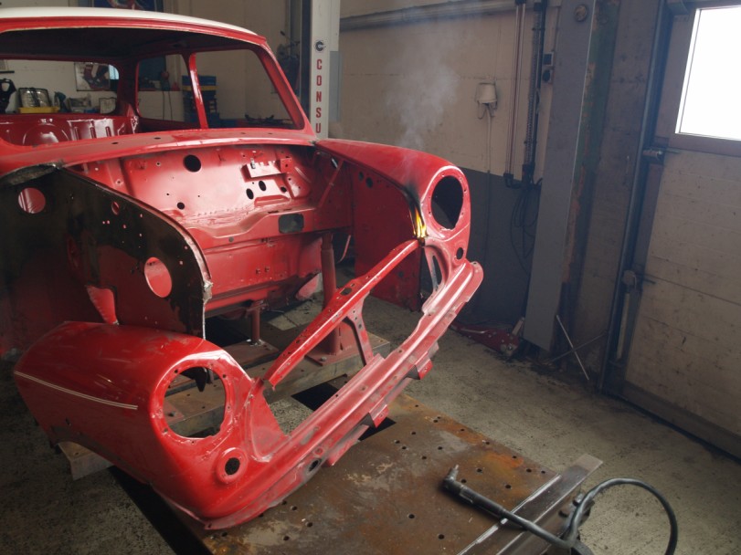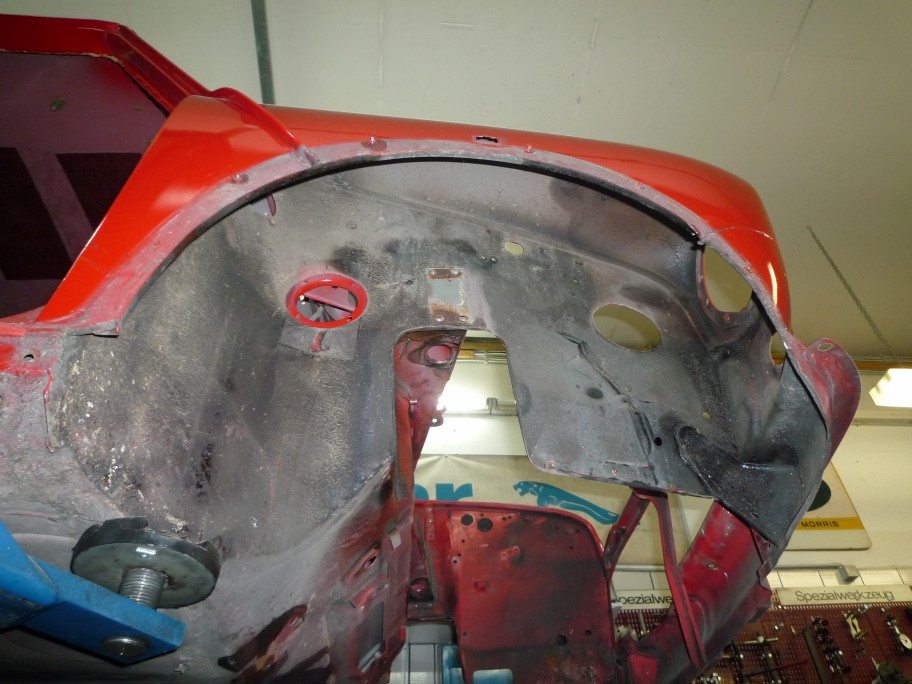 Naja, lange Rede, kurzer Sinn: Ende 2012 wurde das Auto bei Classic-Line 'zerlegt'. Dann ging es zum Hans Mueller-Deck nach Zuelpich fuer die Karosserie. Zeitgleich haben einige Betriebe in und um Bietigheim (Firmen Suedstrahl, Hartmann, Goetz) sich um die Fahrwerksteile und den Motorblock verdient gemacht, Ziel war moeglichst alle Teile zu erhalten und wieder in Stand zu setzen. Nachdem Hans die Karosserie wieder gebracht hatte, ging es zur Fa. Taglieber in Fellbach zum lackieren. Tja, und dann war der Umzug von Classic-Line von Bietigheim nach Kirchheim... Meine Hoffnung war ja, dieses Jahr (2014) wieder mit dem Auto auf der Strasse zu sein, aber das hat sich durch den Umzug von Classic-Line halt nicht realisieren lassen...
