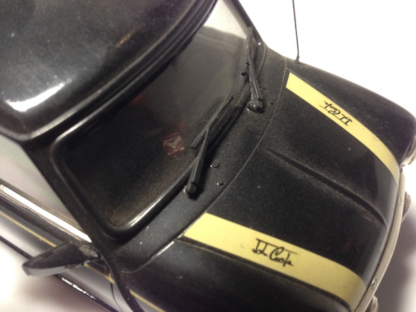 Grundierung aus der Sprühdose, Lack und Klarlack außen mit Badger Airbrush und Innenraum und Motor usw. mit dem Pinsel.
