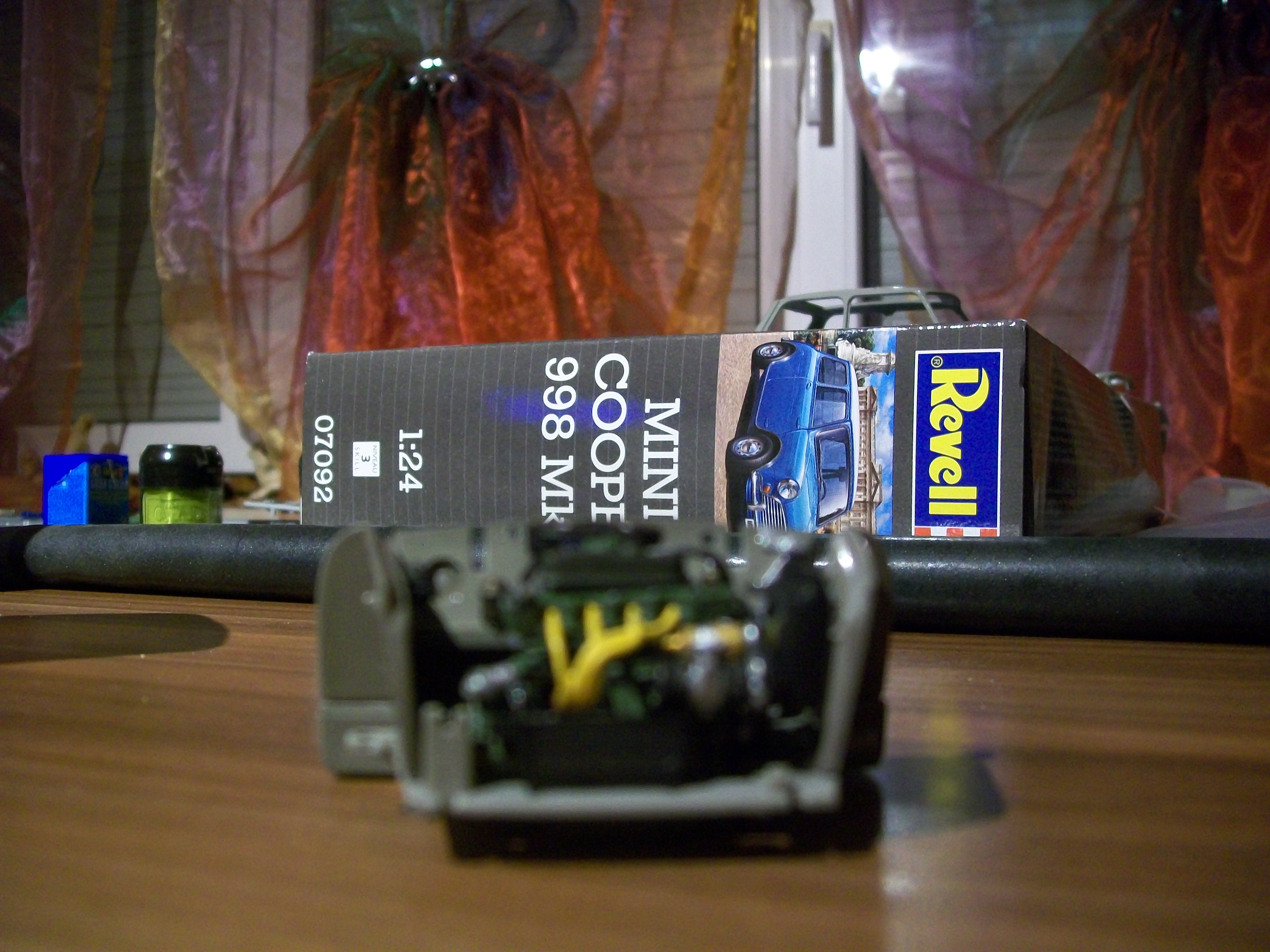 Habe gedacht lass mir mal was einfallen, weil die Anmerkung kam, daß es hier nichts mehr neues gibt. Deshalb dachte ich stell mal ein kleines Projekt vor meinen Austin Cooper von Revell in 1:24.Vielleicht hängt sich ja hier der ein oder andere mit dran oder findet anregung für sein Modell. Hier Mal ein Paar Bilder vom Bau bis zum Endergebnis: