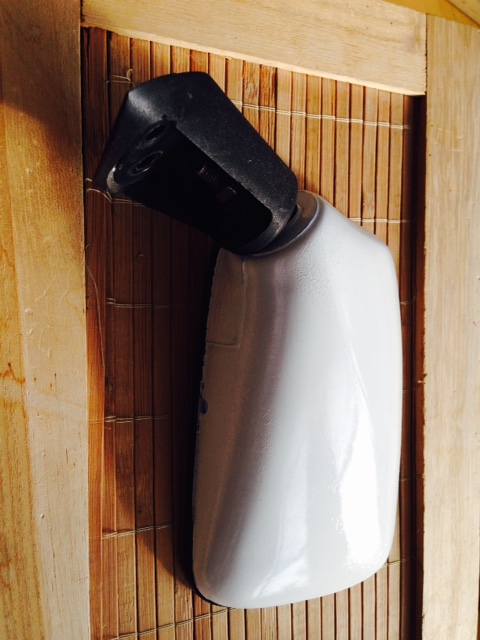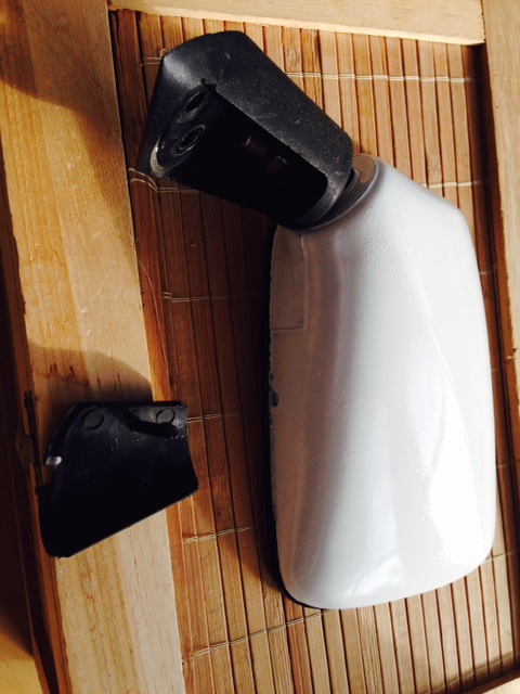 Er ist weiß lackiert. Müsste aber nu lackiert werden. auch der Spiegel hat ein paar schwarze punkte.