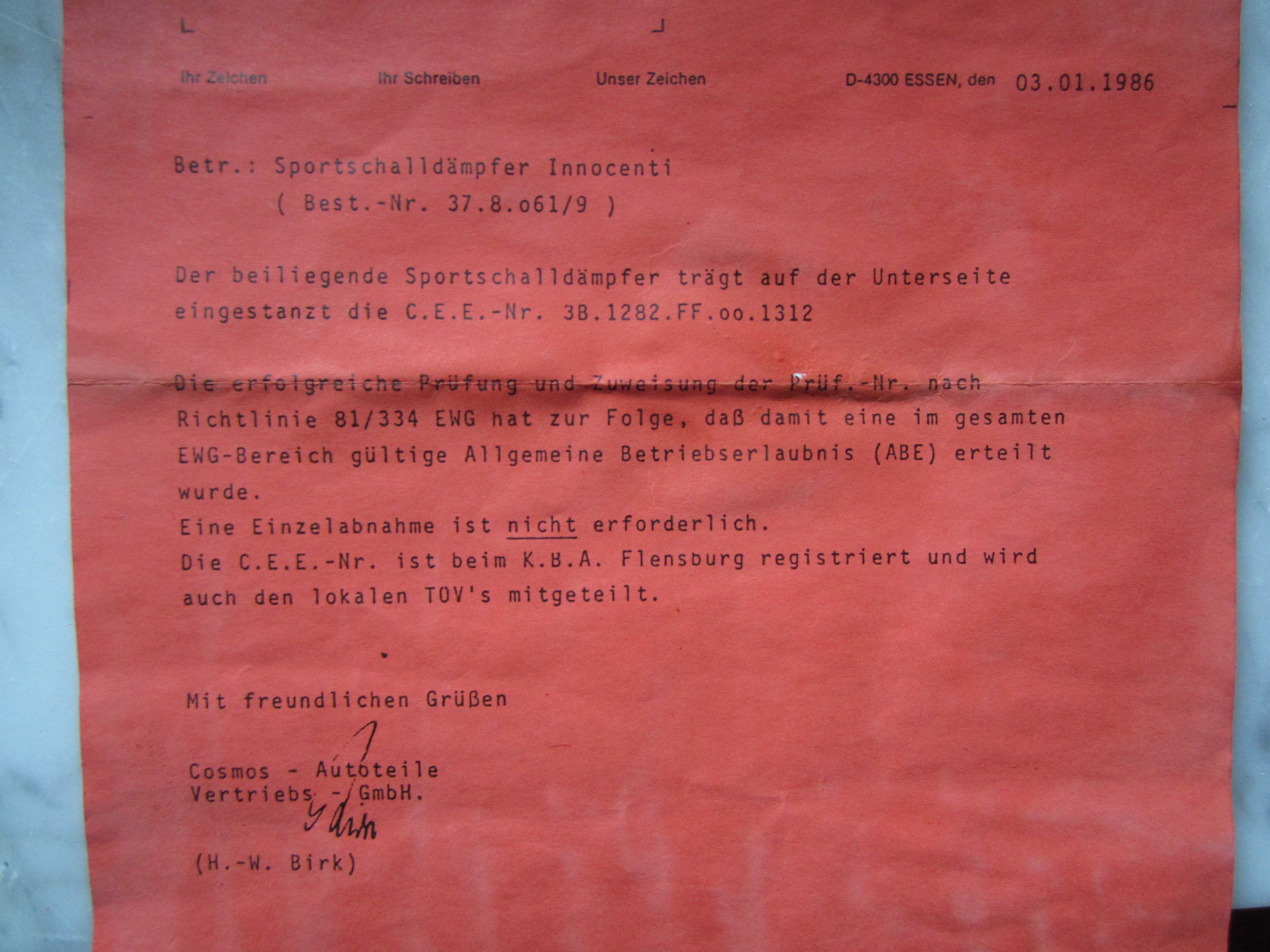 Biete für Innocenti-Mini Bonini Endschalldämpfer. Das Teil ist neu, war nie angebaut.
