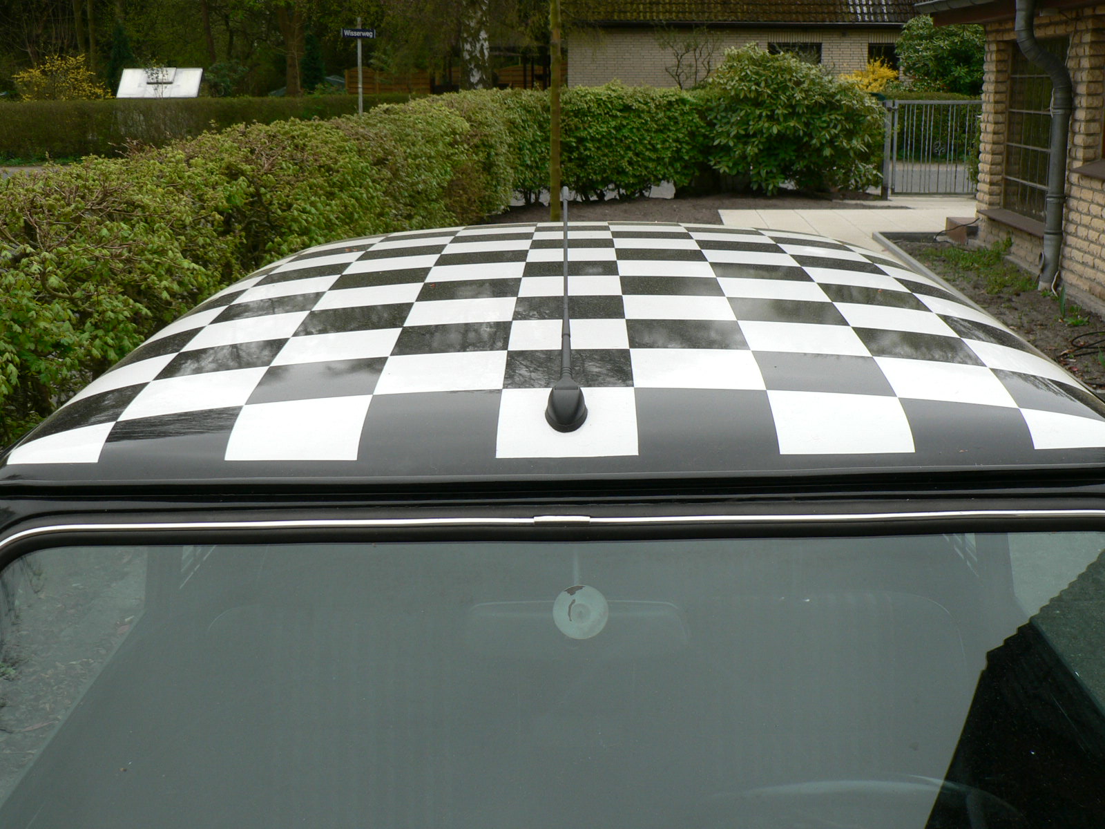 Farbe: schwarz schwarz-weiß kariertes Dach lackiert innen schwarz Stoff mit rot.
