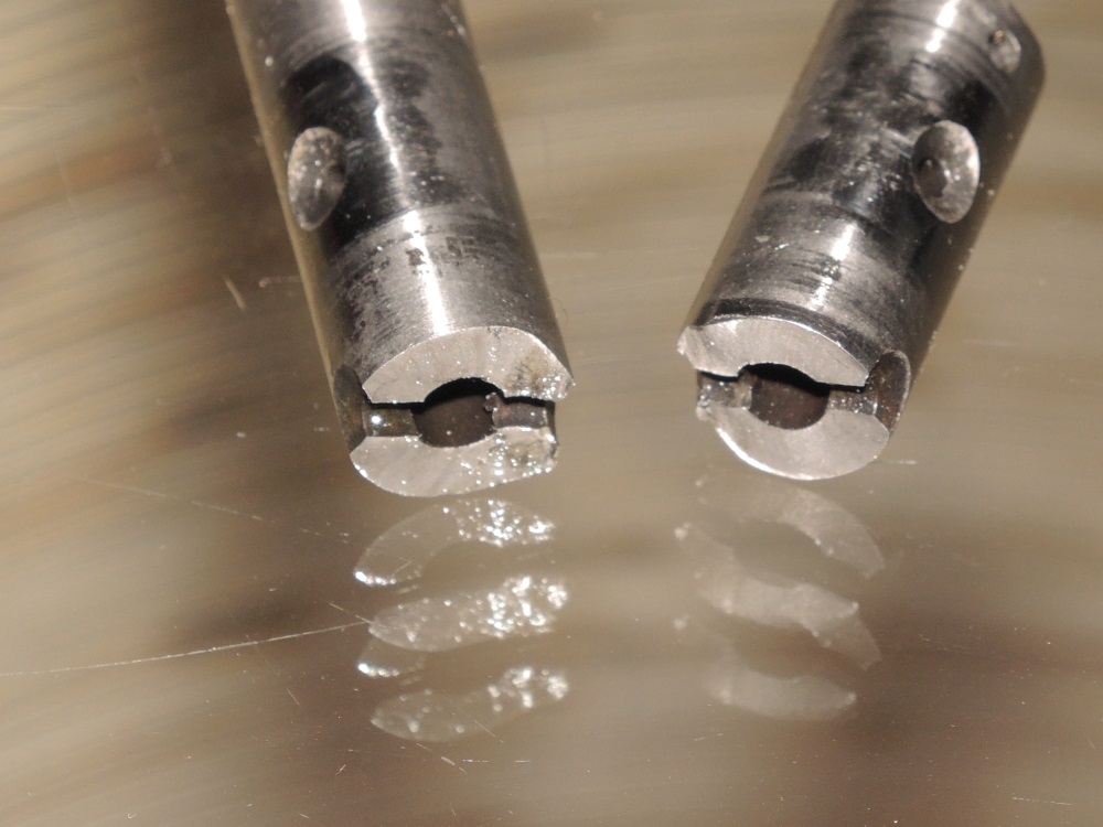 Der Bruch der Welle began mit hoher Wahrscheinlichkeit im Zentrum der Senkung, also die Stelle mit dem kleinstem Randfaserabstand (kleinster Querschnitt sowieso) als Dauerbrauch. Das Letzte Drittel ist der Gewaltbruch. Die übrige Bruchfläche sieht auf dem Bild aus wie geschliffen. Deutet darauf hin, dass das Ding komplett durchgehärtet ist.