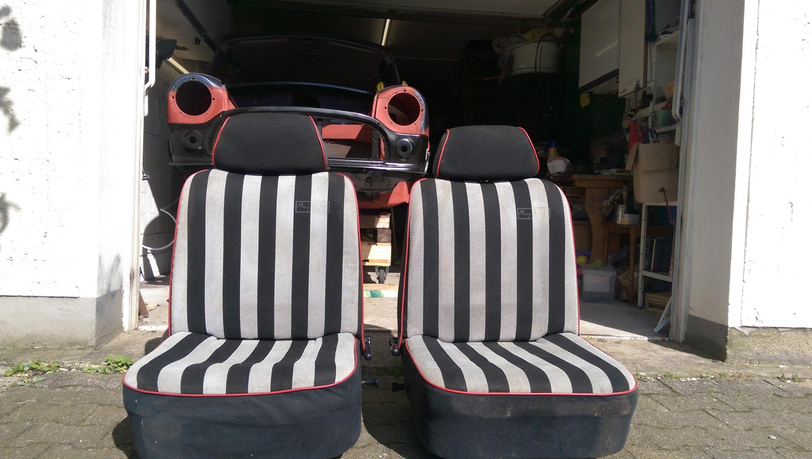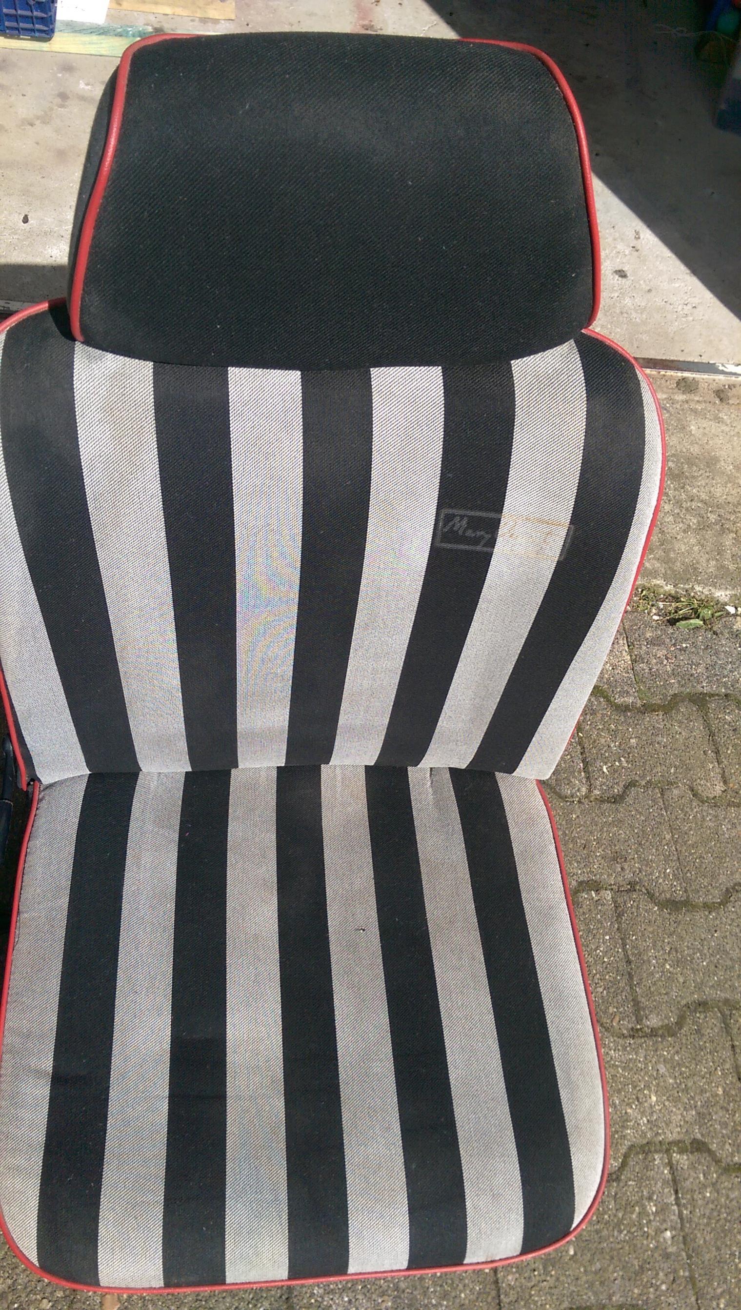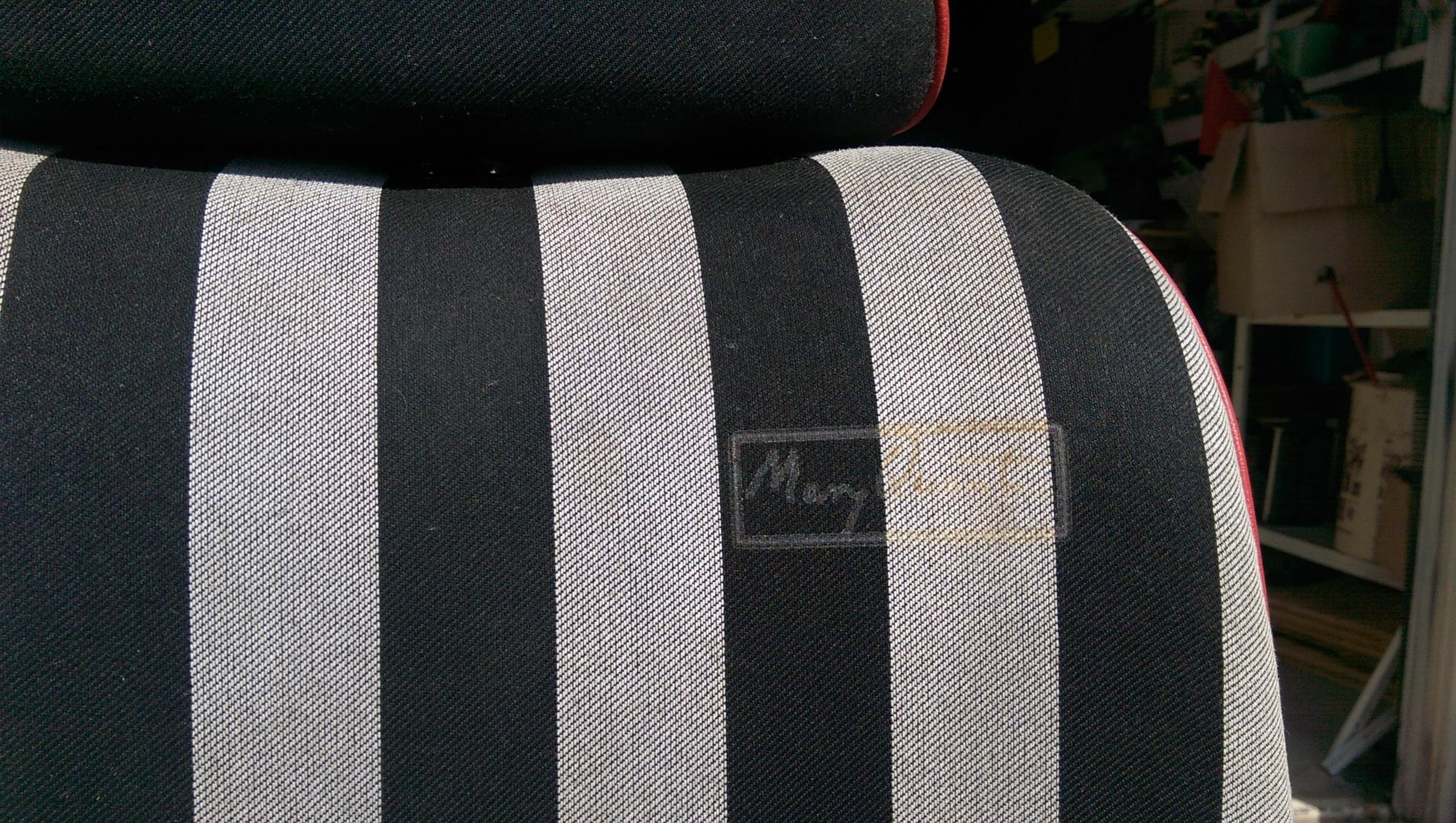 Moin, die Sitze stammen aus dem Sondermodell Designer, gestylt von Mary Quant, der Erfinderin des Minirockes. Darum steht Auch Mary Quant auf den Sitzen. Ziemlich selten, aber in UK gibt es dafür ein eigenes Register. Google mal...