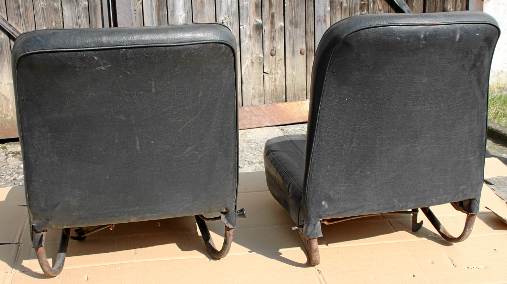 welchen Zustand sollen die denn haben? Ich hätte diese beiden zum Aufarbeiten anzubieten. Schwarzes Kunstleder, schmutzig und mit kleinen Macken, Gestelle müssten entrostet und lackiert werden. Preis für beide zusammen 35,- EUR, einzeln je 20,- EUR. Bei Interesse 'ne PN schicken......