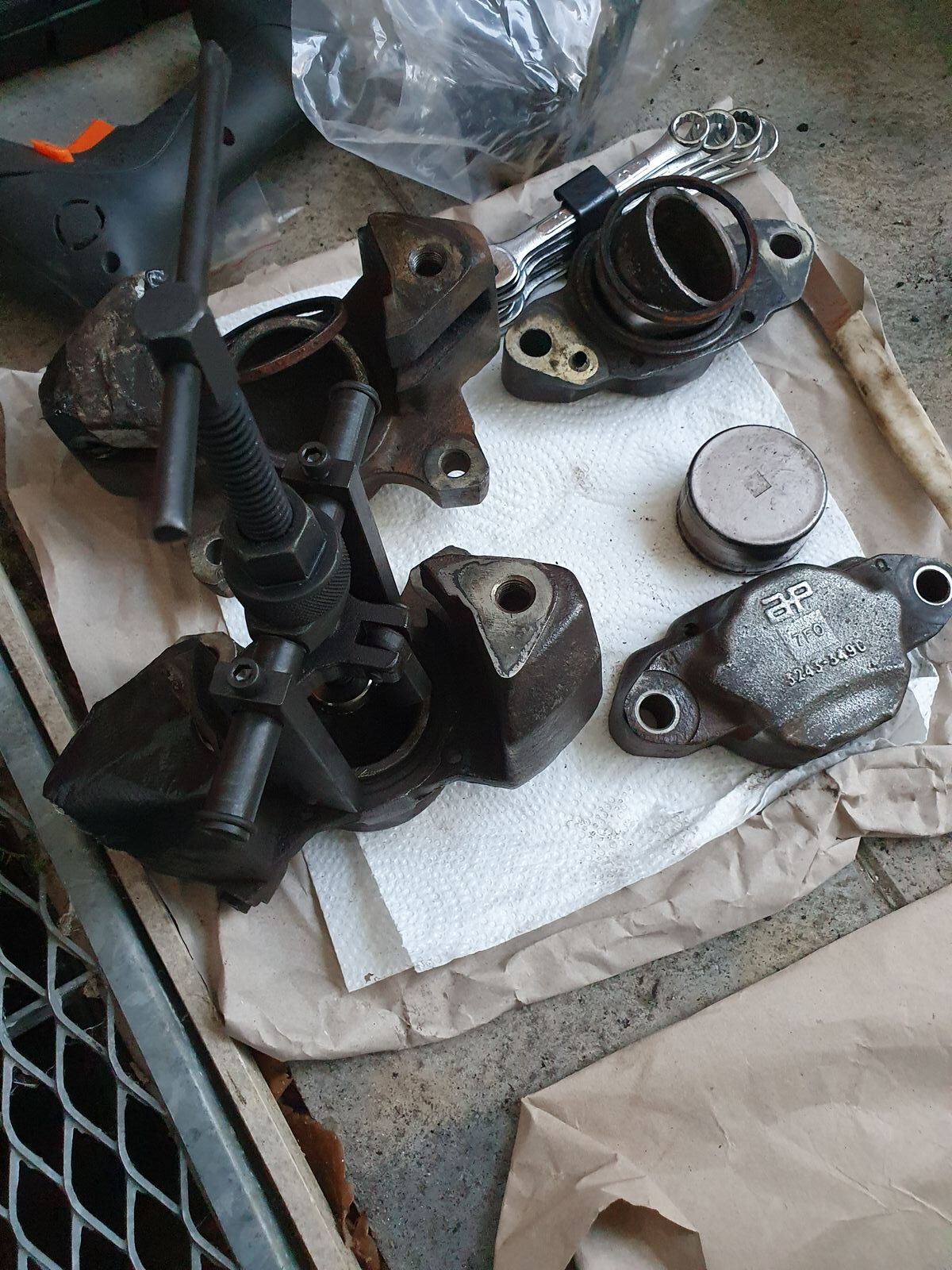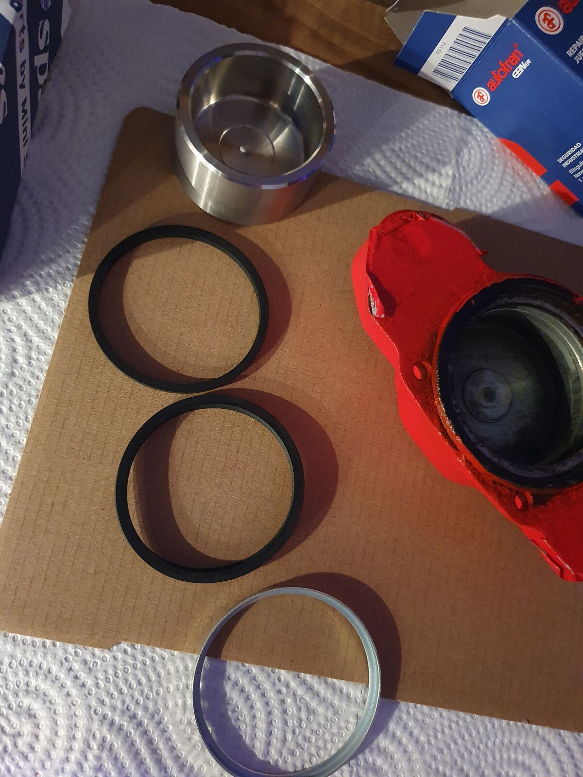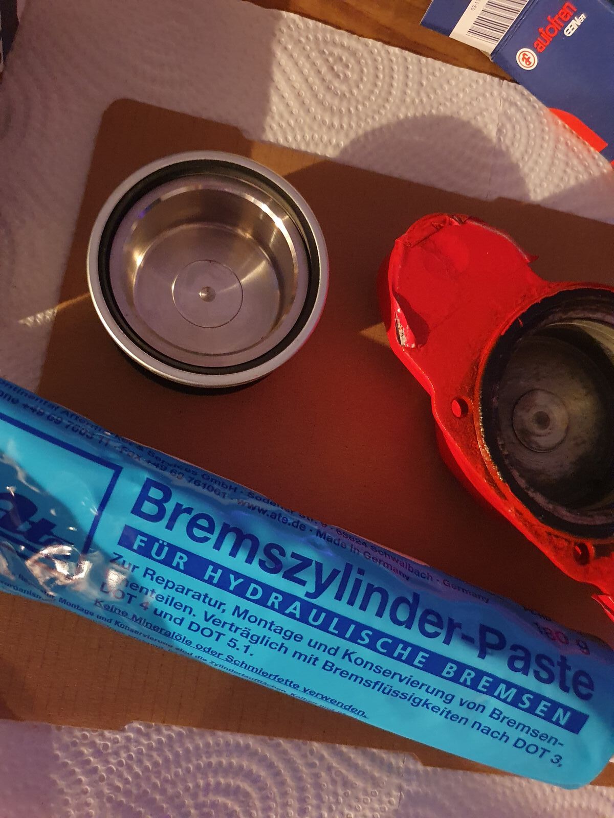 • Hab die Bremszange mehr oder weniger ausversehen noch an der Scheibe abgeschraubt...Ich brauche bestimmt auch neue Dichtringe.