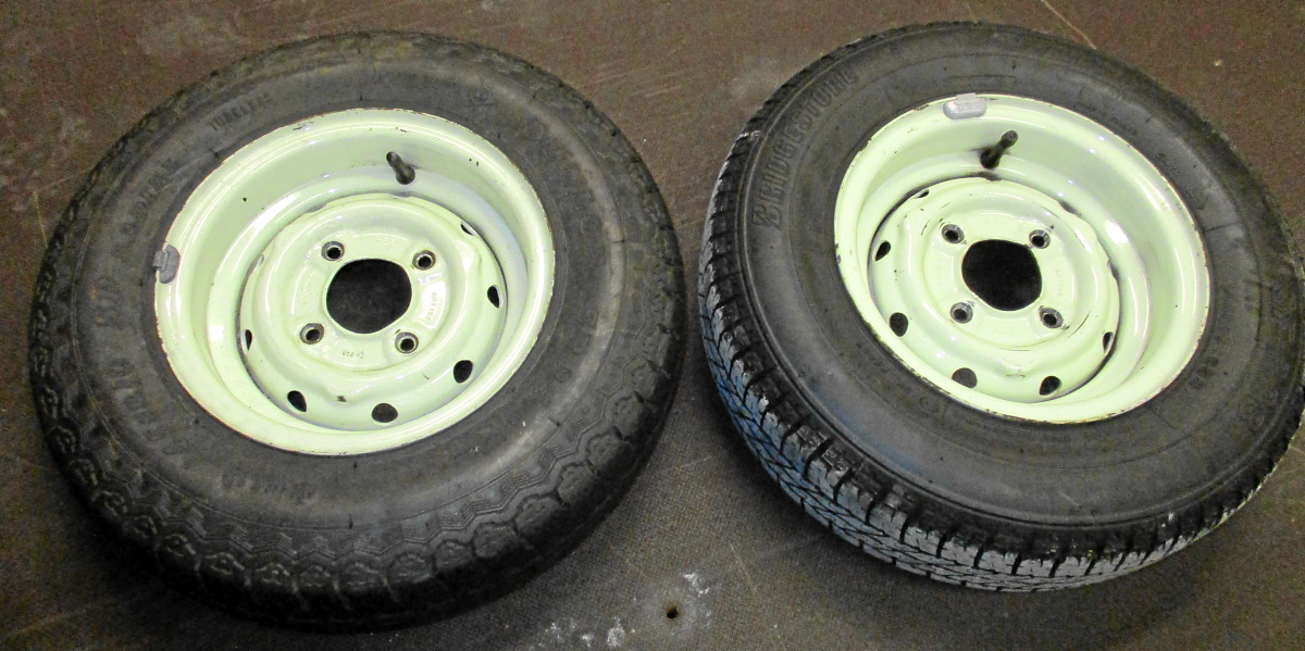 Wir verkaufen einen kompletten Satz, also fünf (!) Stück, guter, originaler 5x10" Dunlop LP918 Felgen in Cremeweiß. Felgen haben alle leichte Lackmacken am äußeren Rand - kann man noch unter Patina abhaken oder eben neu lacken / pulvern. Auf allen sind noch uralte Reifen, viermal 145er (!) Uniroyal mit ordentlich Profil. Entweder Verkauf mit Reifen, oder für die Demontage 25,- EUR zusätzlich. Können notfalls verschickt werden, dann aber nur ohne Reifen. Porto zahlt der Käufer.