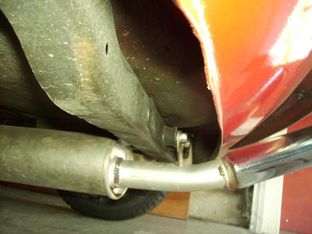 Heute habe ich den Endtopf mal probeweise unters Fahrzeug gehalten, dabei habe ich gemerkt das ich schon vorhanden löcher mit Gummis nutzen könnte.