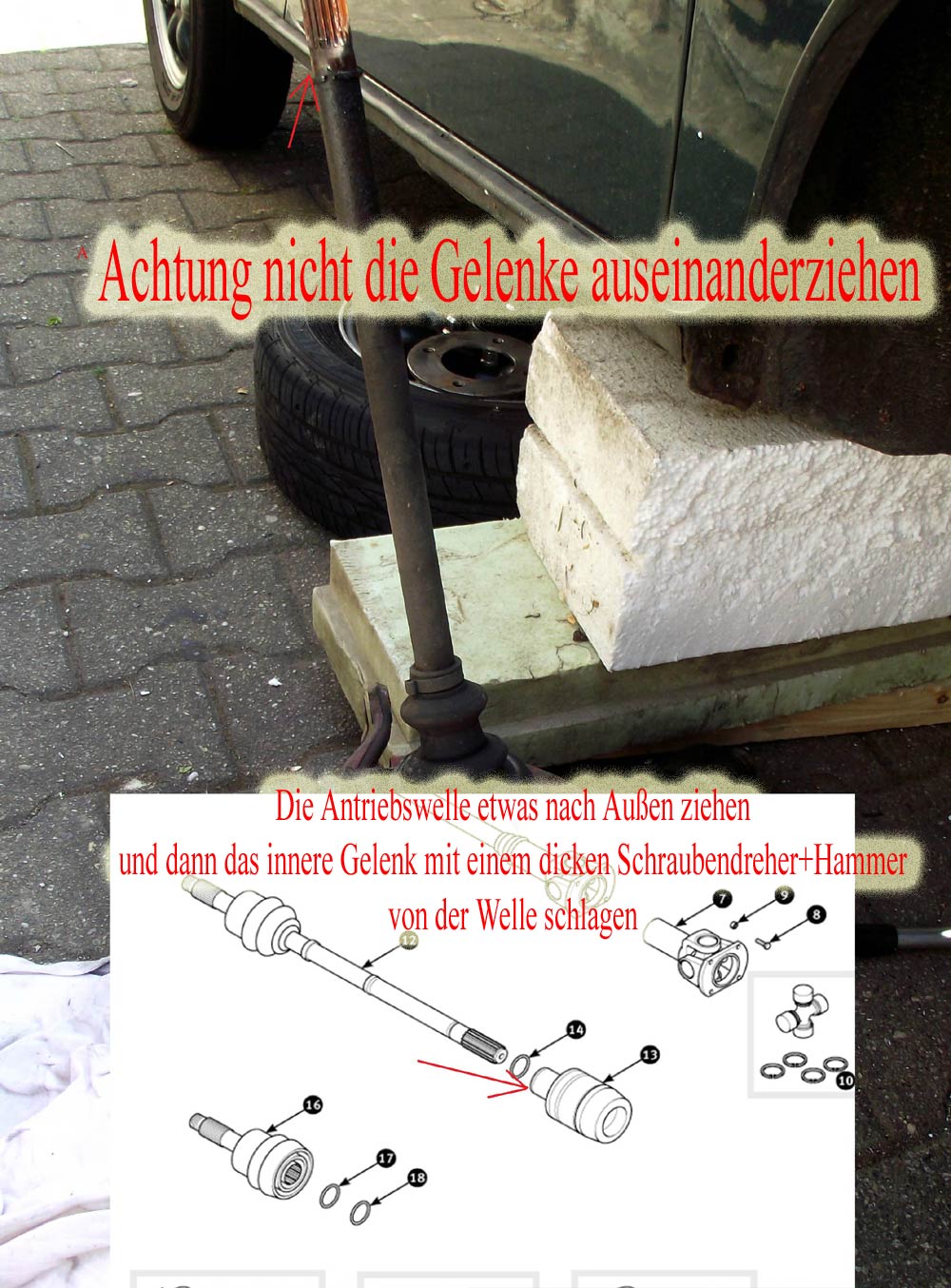 7. Antriebswelle wieder reinstecken (vorher neuen Federring aufstecken)