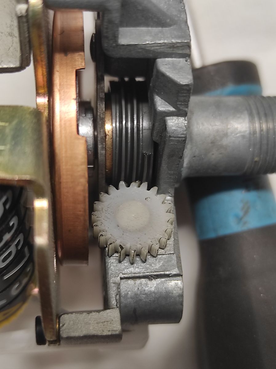 Ich versuch jetzt die Welle mit dem weißen Zahnrad rauszubekommen und dann mach ich mich auf die Suche nach Ersatzteilen. :roll-eyes: