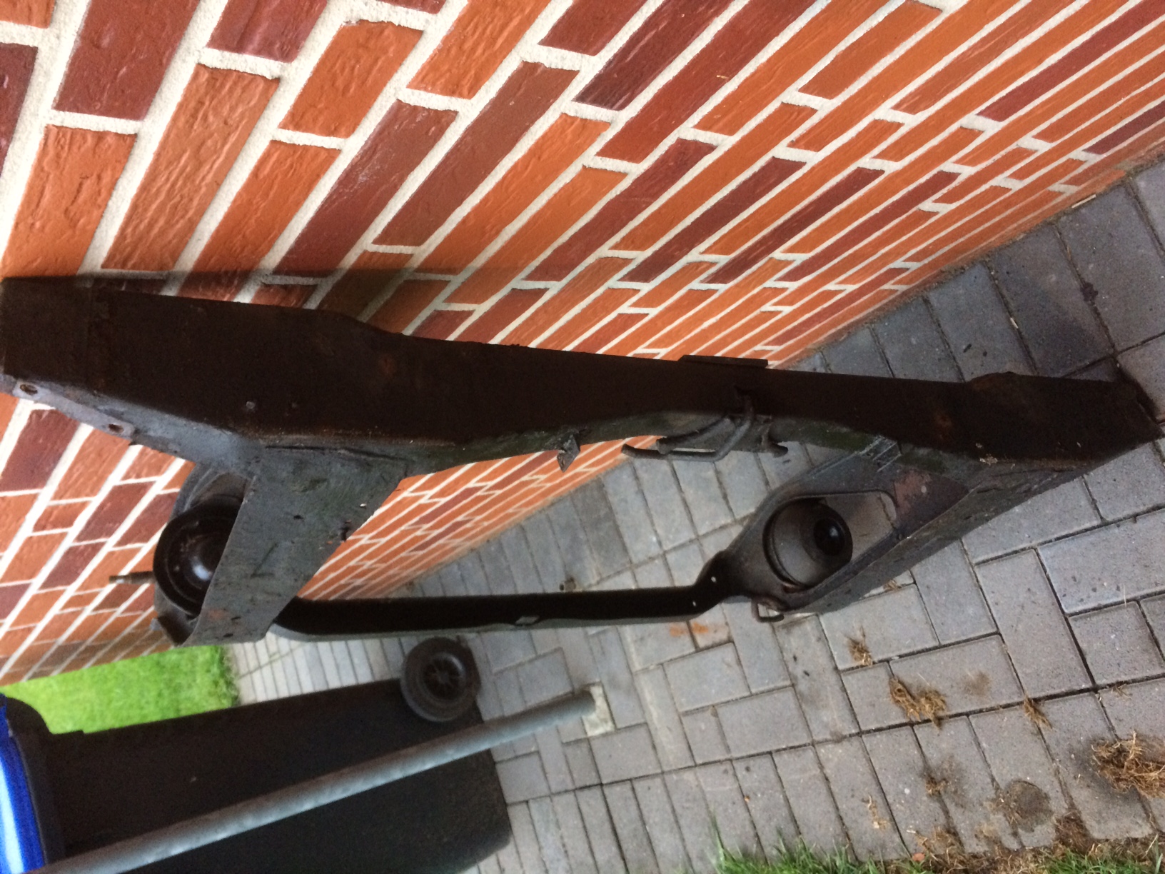 habe einen Hilfrahmen vom 1998er MPI abzugeben. Er ist von drei Seiten gut mit Mike-Sanders konserviert, zeigt aber speziell an den oberen Knoten vorn Blattrost. Vielleicht ist er aber dennoch jemandem dienlich, daher biete ich ihn an, bevor ich ihn dem Schrotthändler überlasse. Die Eckwinkel für die Schwingenaufnahme gehören dazu.