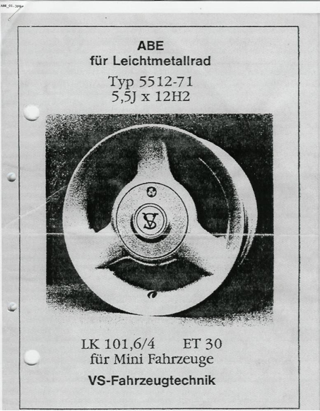3 Speichen Felgen 5,5x12 ET30 schwarz VS-Fahrzeugtechnik (mit TÜV-Gutachten/ABE))
