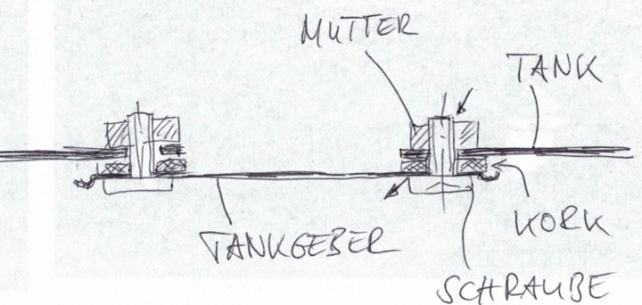 Konkret kommt zwischen Tank und Tankgeber eine Korkdichtung. Der Tankgeber wird dann mit sechs Schrauben befestigt.