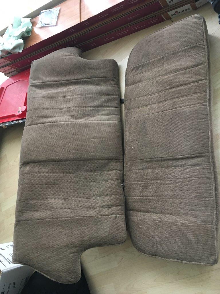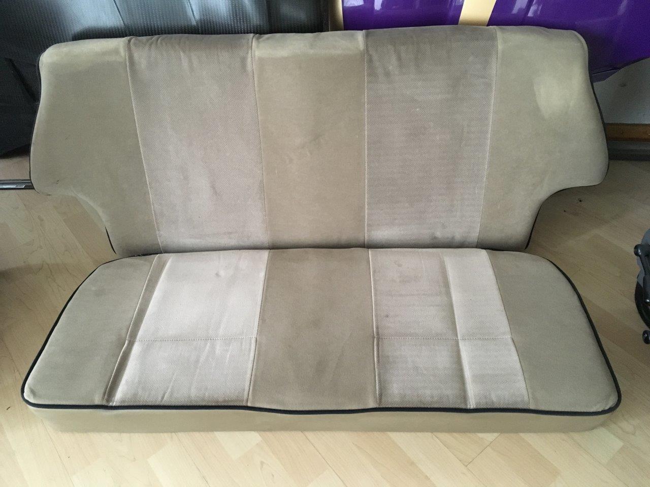 Die Rücksitzbank ist in schlechtem Zustand und taugt nur zum neu beziehen, vermutlich muss auch der Schaum ersetzt werden.