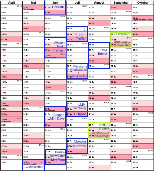 31. Juli 2018 um 17:22 #1 Auch hier mal ein Blick auf den vorläufigen Terminkalender 2019.Die grünen Termine sind die Wunschdaten der Clubs die noch von den Platz Eigentümern bestätigt werden müssen.