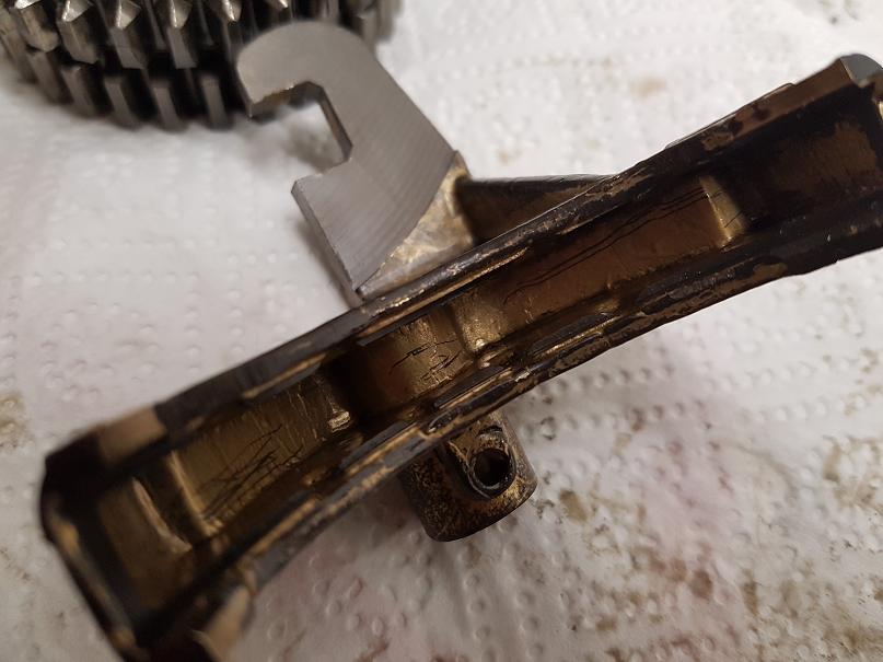Anbei Bilder von den Schaltgabeln. Habe schon oft gelesen das man die Schaltgabel für 1. und 2. Gang gegen ein Neuteil tauschen soll, wollte aber eine Begutachtung von Spezialisten hier im Forum mit einbeziehen.