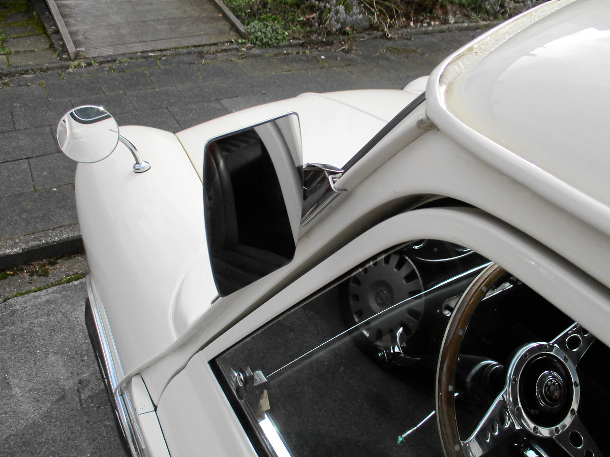 Ja, kein Problem. Wichtig ist, dass er die Befestigung gegenüber den Standard-Klemmspiegeln um 90° gedreht hat. Also mit dem Schlitz nach außen, vom Spiegel weg zeigend. Die anderen werden alle an Scheiben oder Scheibenrahmen gesteckt, diese hier dagegen auf die außenliegende, im Winkel abstehende Falz. Er lässt sich vertikal weit genug schwenken um sowohl rechts wie auch links zu passen.