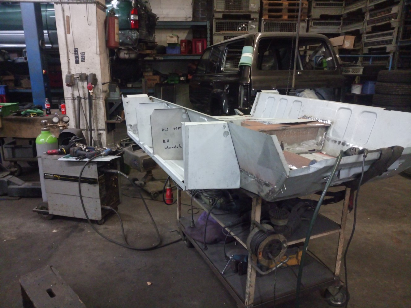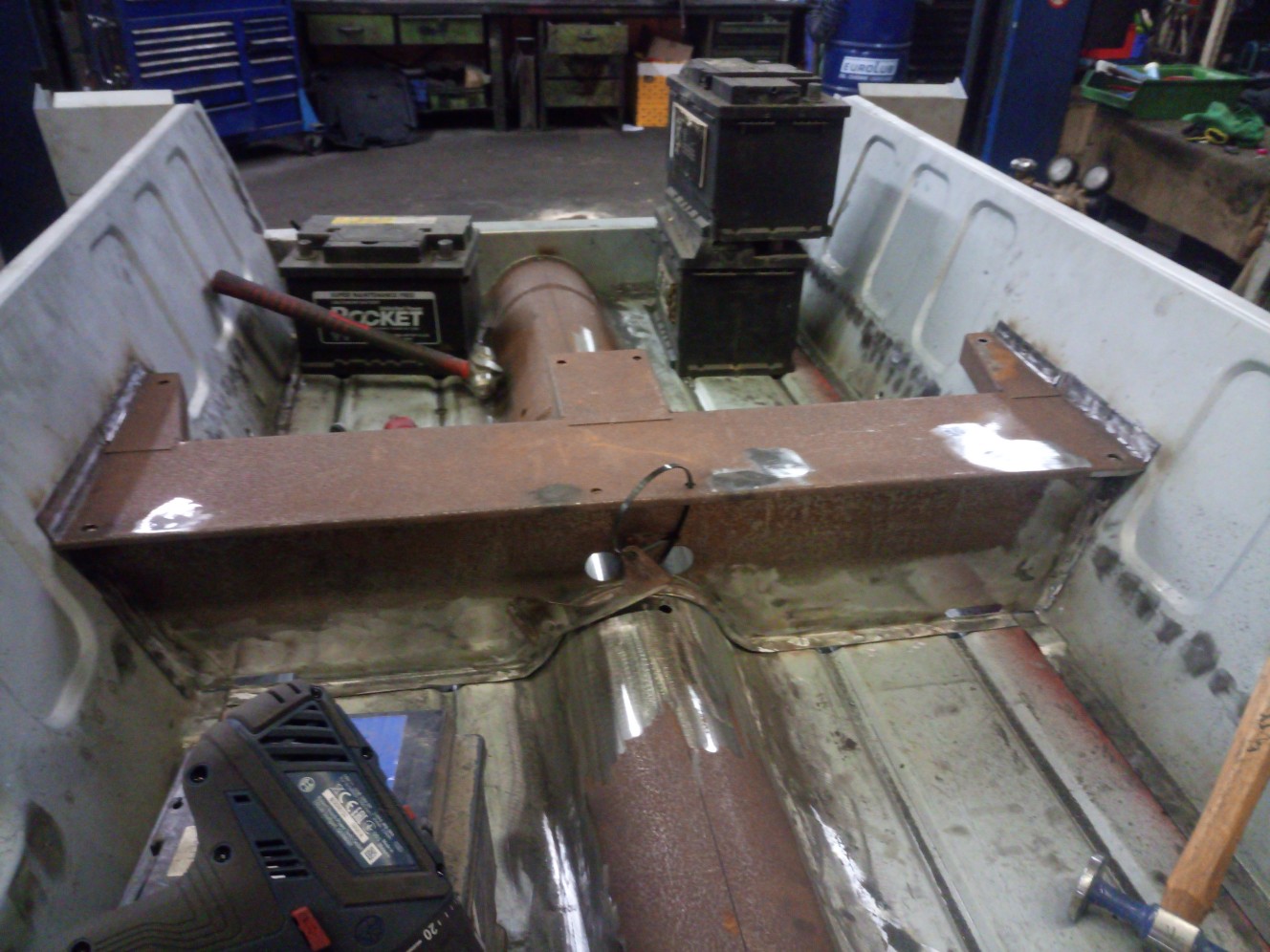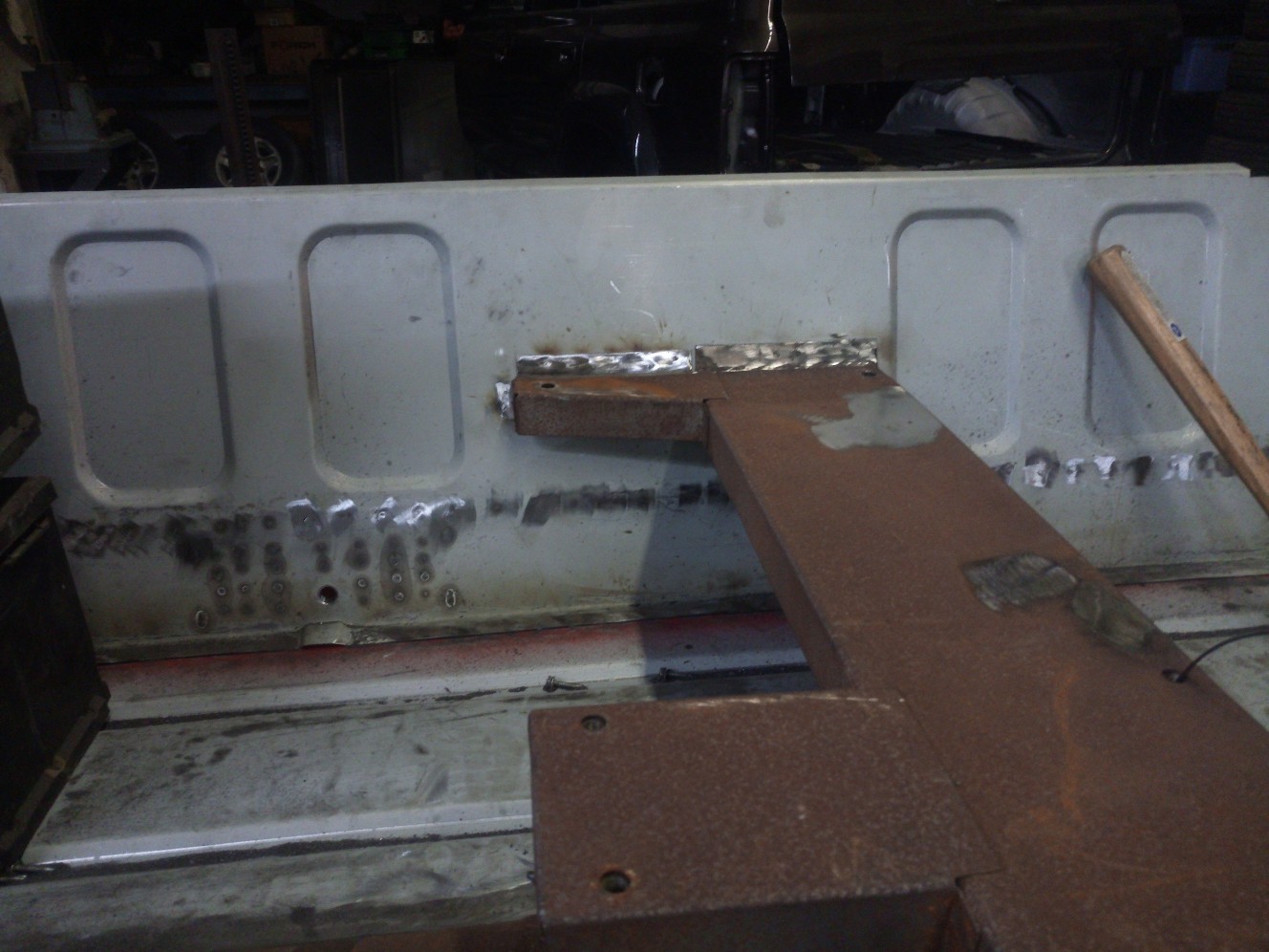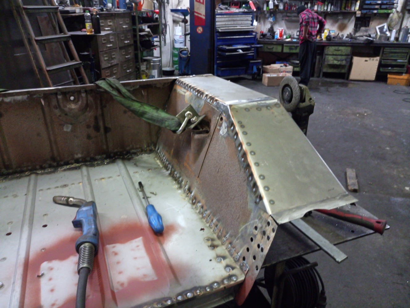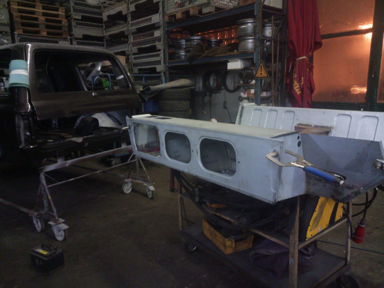 In den später nicht mehr zugänglichen Hohlräumen habe ich vorher noch Rostschutzfarbe aufgetragen.Bin leider noch nicht ganz durch mit dem verschweissen und Punkten zurückschleifen aber brauche ja nächstes mal noch was zu tun.