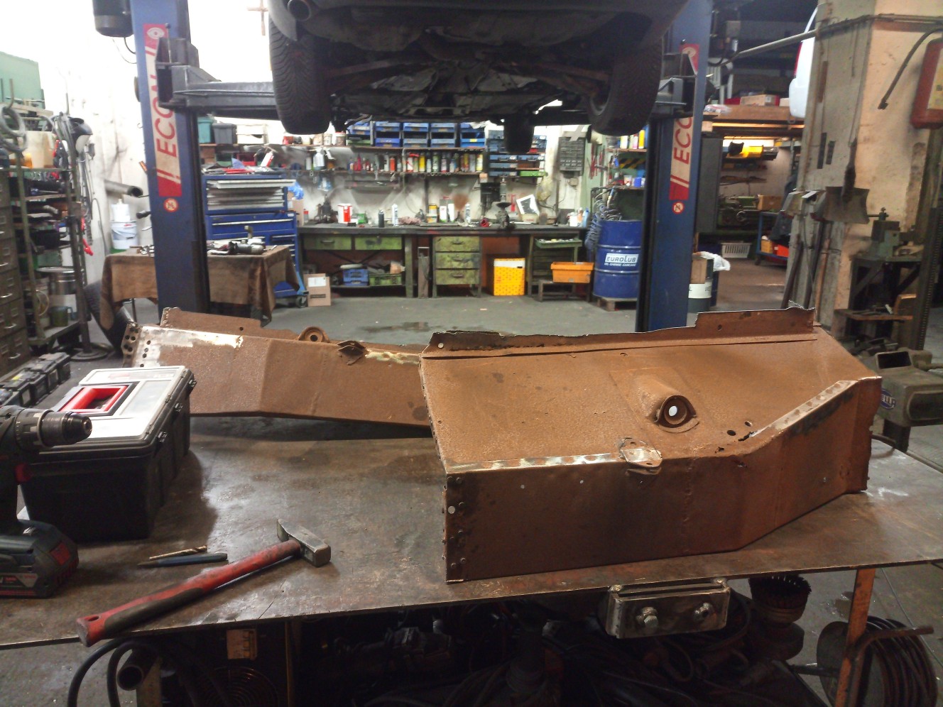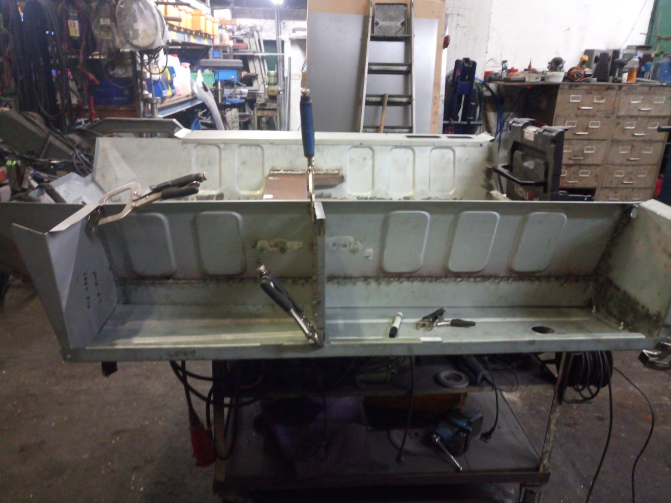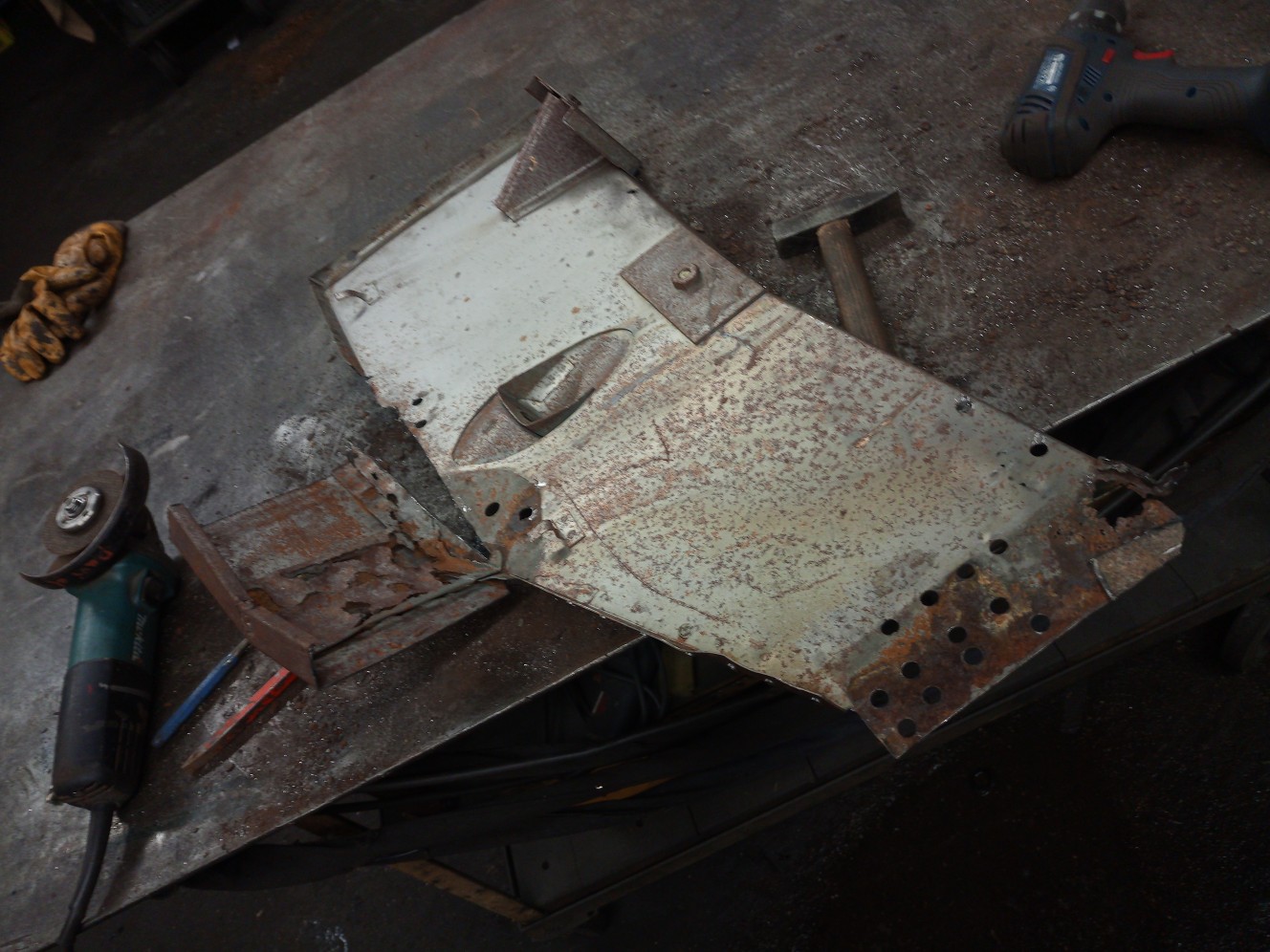 Weiter ging es dann mit dem Filetieren des Hecks. Das Bodenblech und die Träger habe ich neu und werde hier nur noch das Heckblech und die Seitenwände instandsetzen.