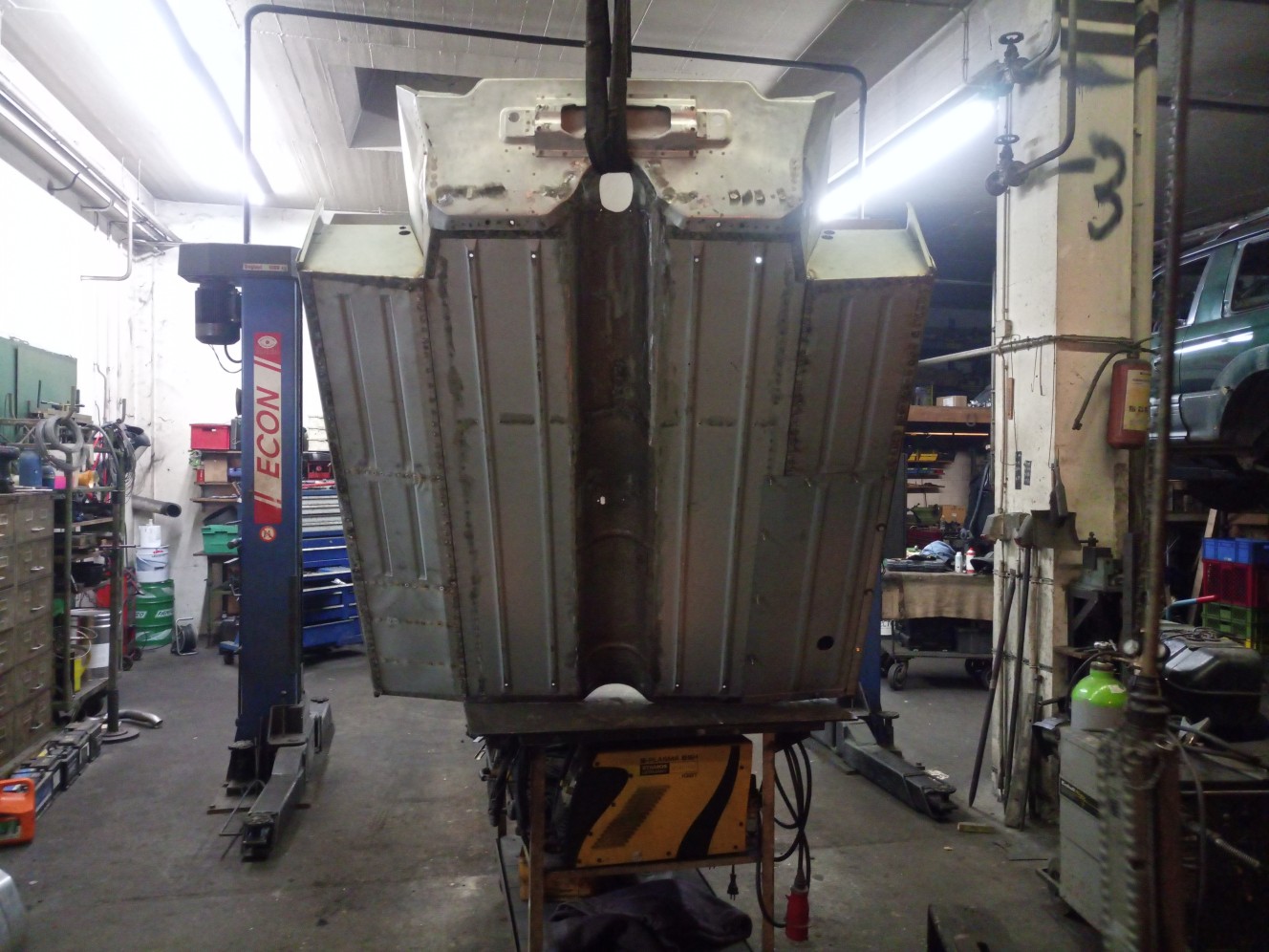 Die sichtbaren Stellen werden am Schluss mit der gesamten Karosse gesandstrahlt.Nachdem jetzt wider alle Teile für das Heck vorhanden sind Kann ich demnächst anfangen es wieder zusammenzusetzen.