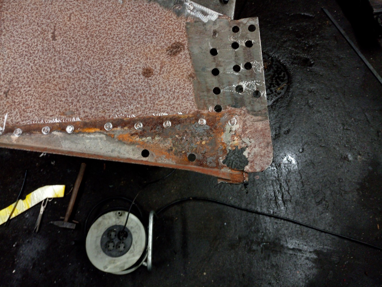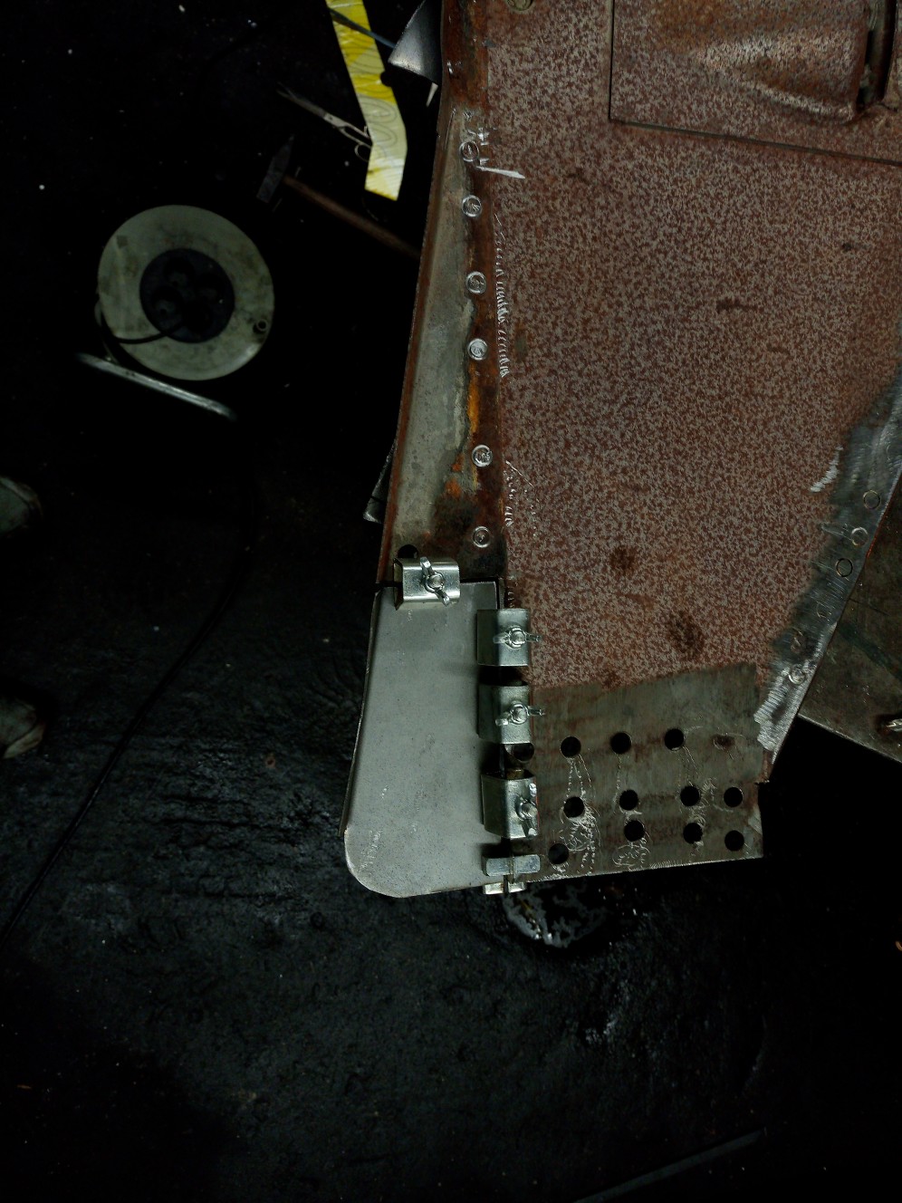 Hier mal wieder eine Schöne stelle. Das waren mal die Knotenbleche in den Kotflügeln.