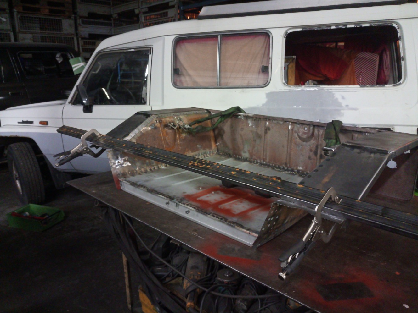 So nachdem der Mittelteil nun bis auf die Deckel vorerst fertig ist habe ich inzwischen die restlichen brauchbaren teile der Karosserie zu bergen.