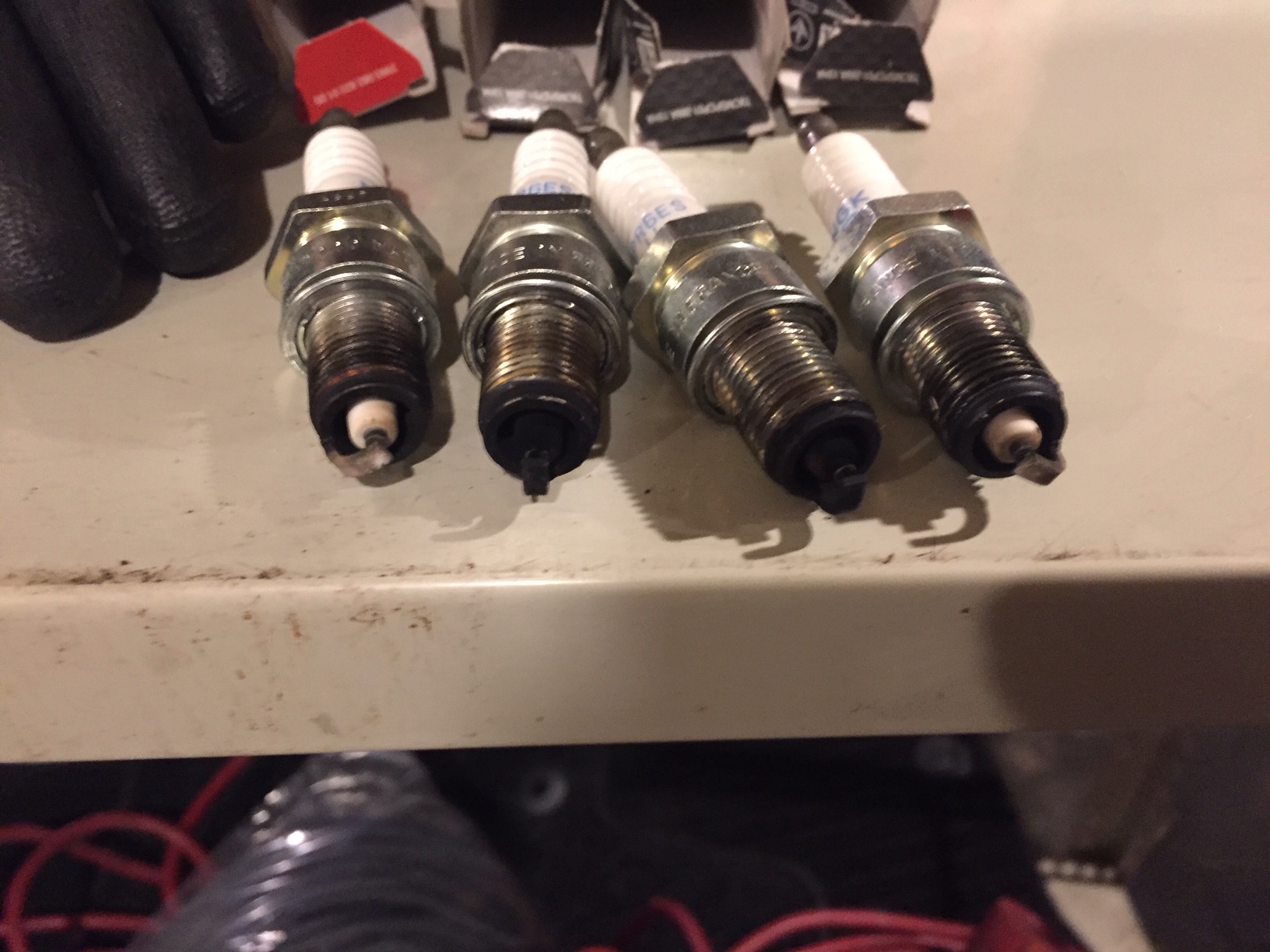 Beim rausschrauben viel mir auf, dass die Zündkerzen aus Zylinder 1 & 4 weiss waren und die Kerzen aus 3 & 4 wiederum waren recht schwarz.
