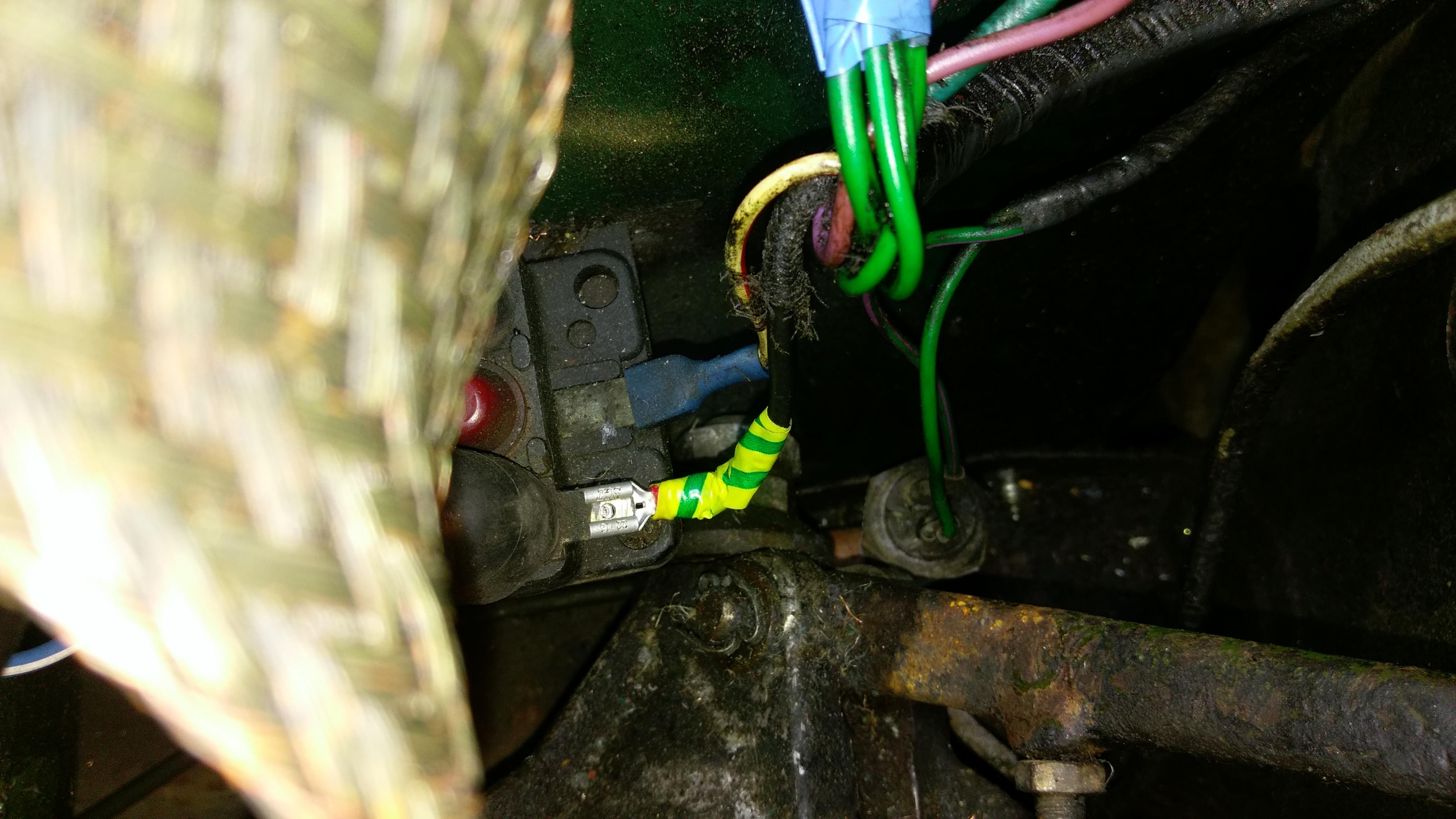 Das andere untere Kabel ist wohl für die Innenbeläuchtung, da die Lampe über dem Fahrersitz flackert, wenn ich daran rüttel...