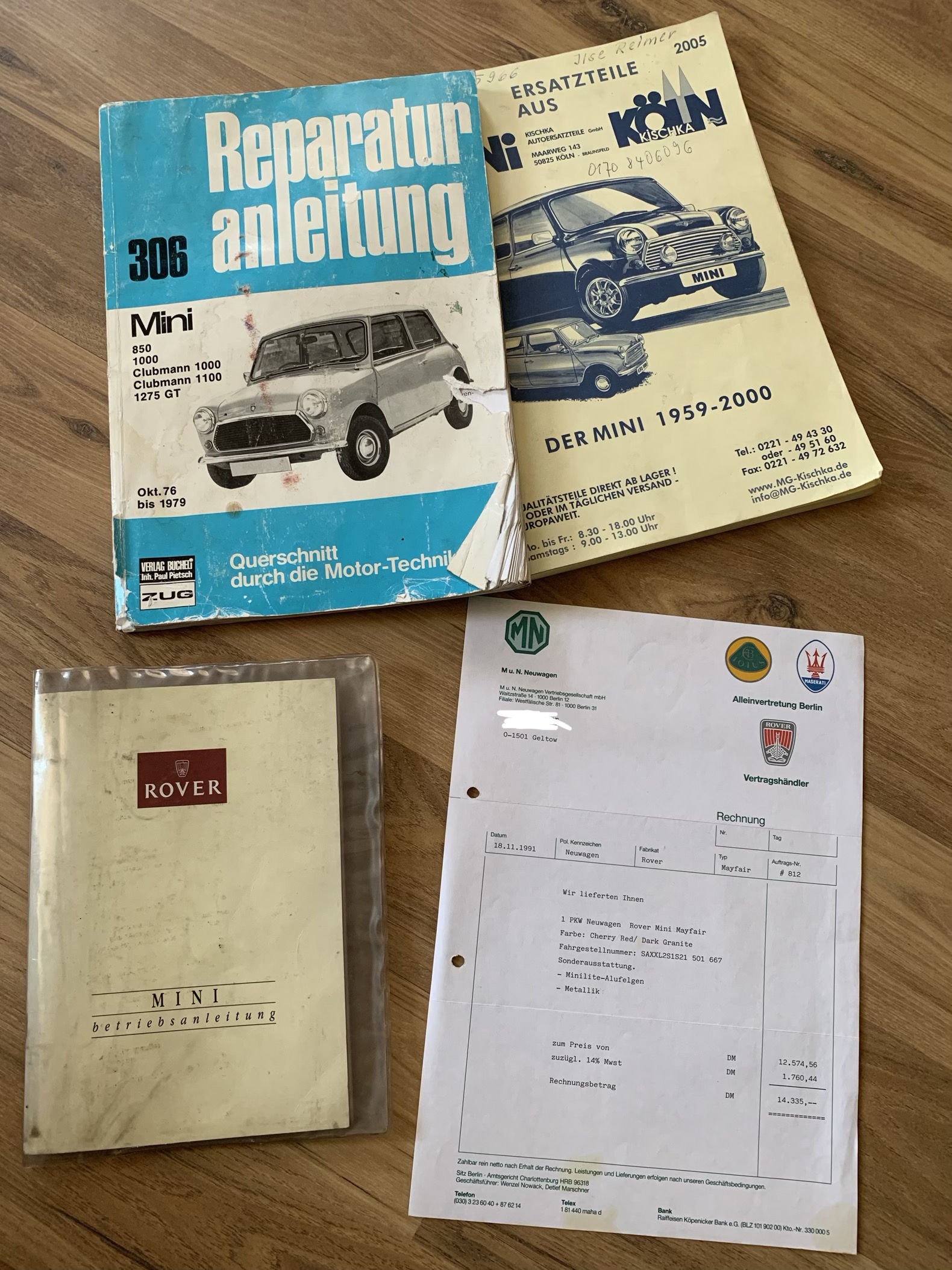 Dabei ist der originale Kaufvertrag von 1991, Reparaturanleitung und die komplette Historie von Teilen die getauscht wurden und TÜV Gutachten.