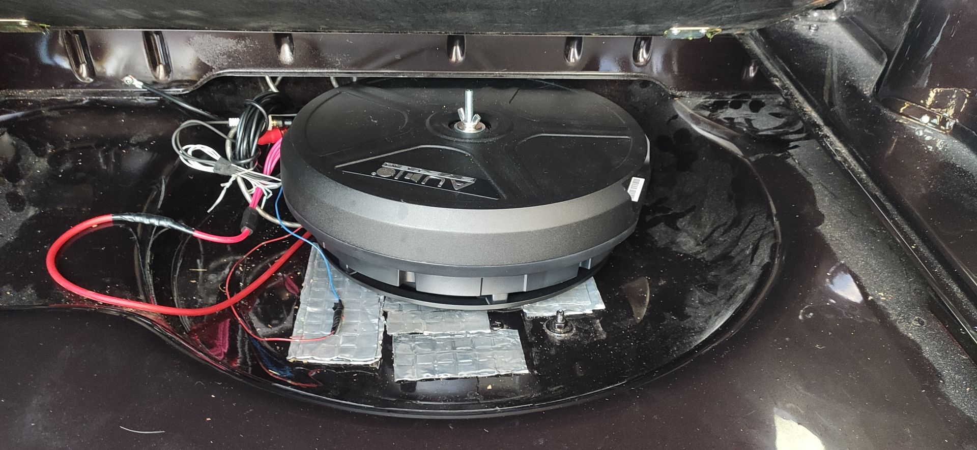 Heute gab's was feines. Einen Aktiv Woofer für die Reserverad Mulde. Da ich nur 2 kleine Lautsprecher habe, ließen die Bässe zu wünschen übrig. Nun rumst das ordentlich, null Komma null bereut. Der hier passt: