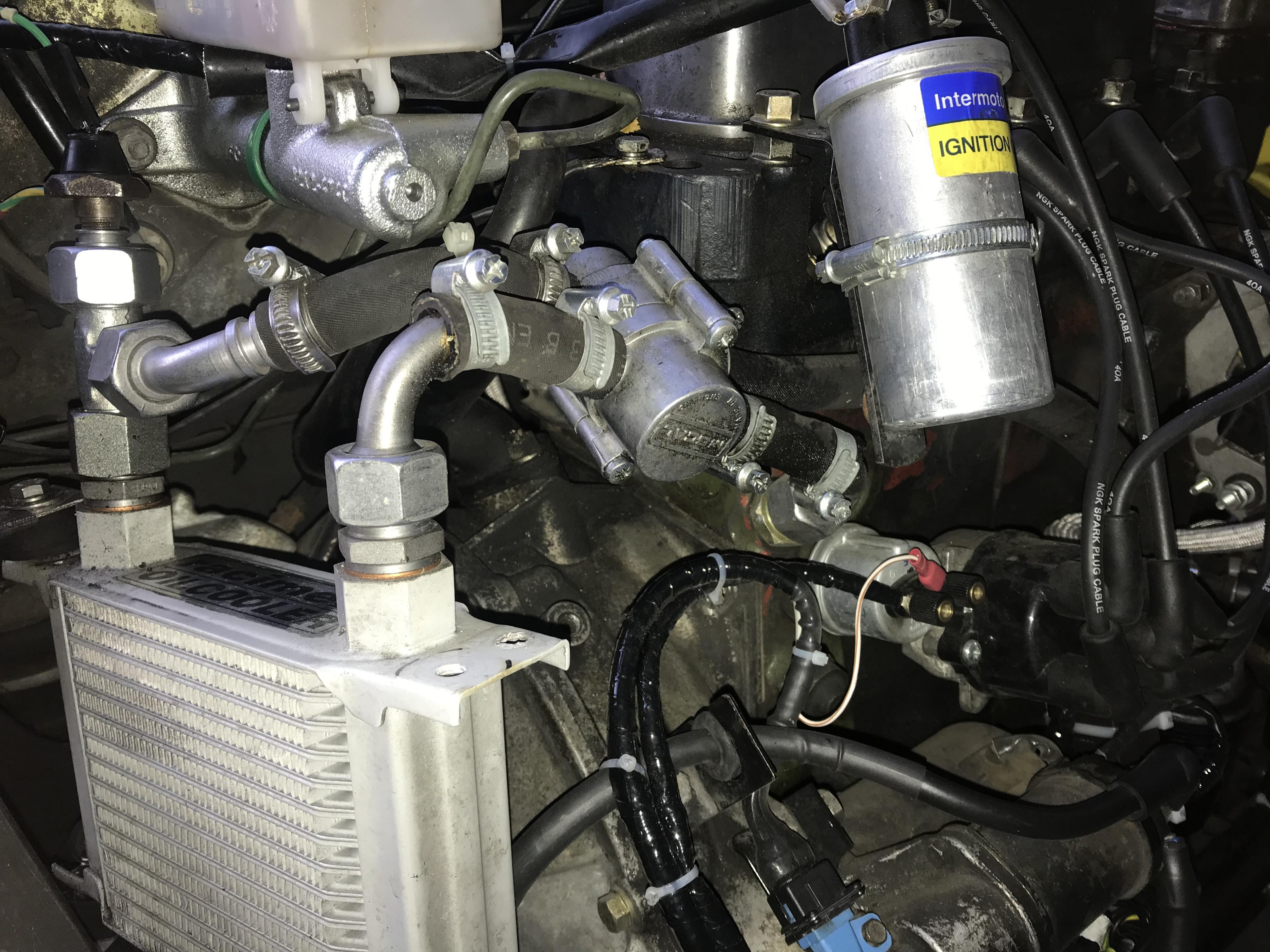 Wasser/Öl Wärmetauscher gab es beim MG Metro, der braucht aber etwas mehr Abstand zum Getriebegehäuse, bzw. Motorblock...heisst auch der Ölfilterflansch und die Zuleitung sind anders. Ebenfalls ist der Platz nach unten zum Rahmen begrenzt, aber alles ist machbar.