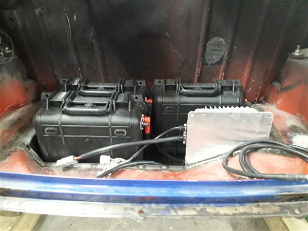Die Koffer sind eine recht lässige Geschichte: wenn ich mal etwas mehr Reichweite im ersten Wagen brauche dann kann ich die einfach rausnehmen und dort anschließen (sind Stecker dran). Oder es werden Speicher für eine PV-Anlage auf meinem Carport (eines der nächsten Projekte...).