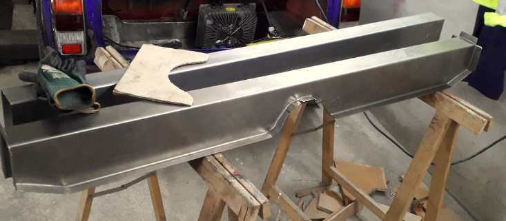 Wenn die Löcher wieder zu sind geht's an die Schweller, und dann endlich an die neuen Querträger, dass die Batterien ihren Platz haben.