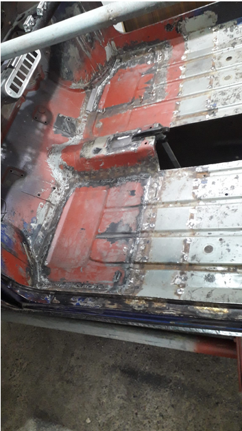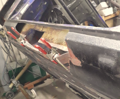 also aufgesetzte Reparaturbleche raus, neu zuschneiden und stumpf wieder rein. Natürlich ist auch das senkrechte Blech auch lokal angegammelt, wie auch die Radhäuser. Kein Wunder dass viele da nur was drüberbraten.