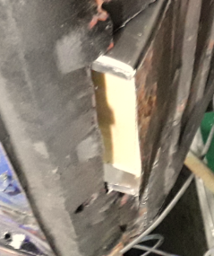 Bin jedenfalls mit dem Blech etwas weiter gekommen. Der Innenschweller ist ja recht einfach modifiziert indem das schräge Blech waagrecht heruntergeklappt und die Lücken (und das entfernte faule Blech) mit neuem Blech aufgefüllt werden: