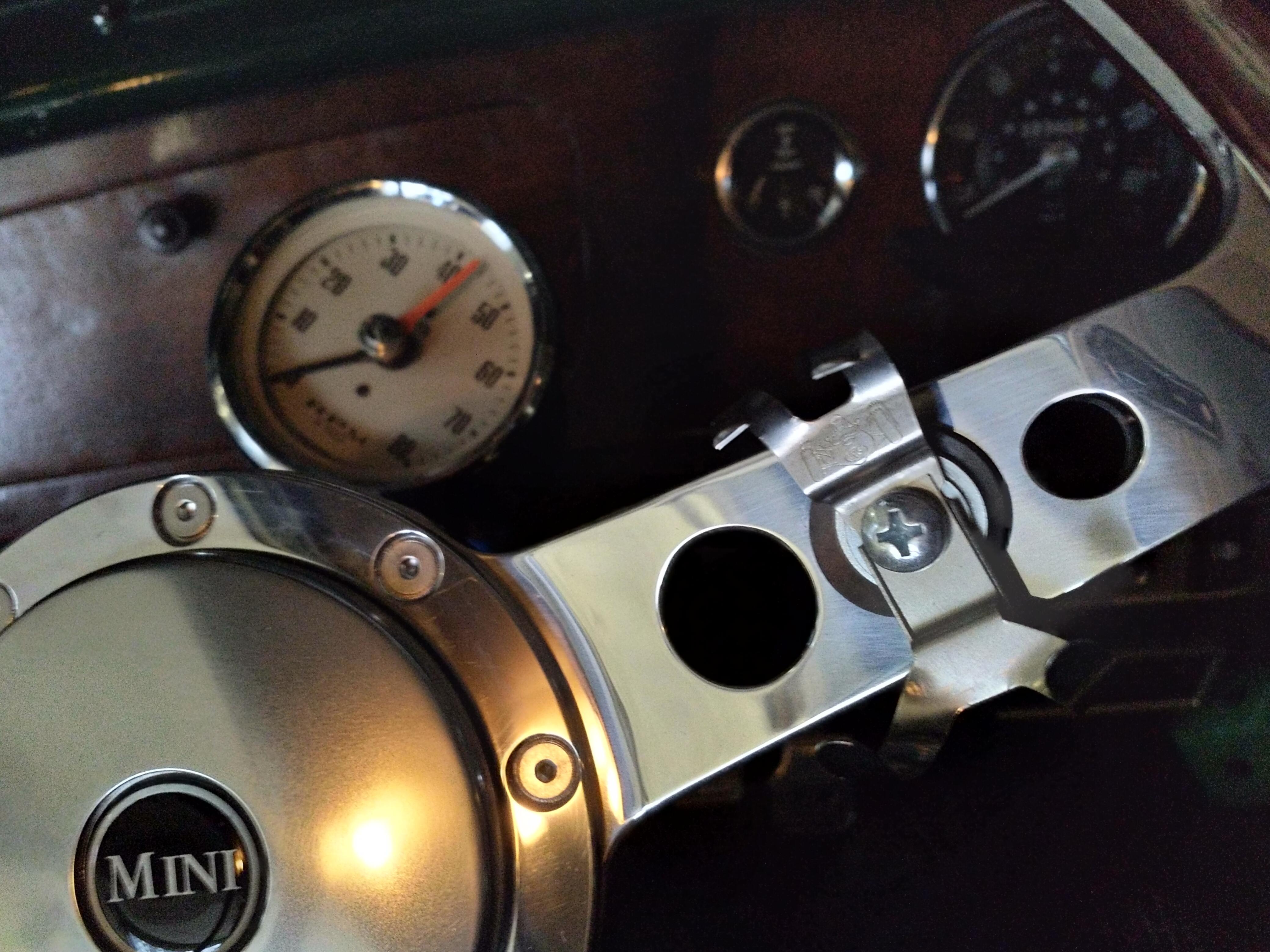 ich suche eine mechanische, analoge Stoppuhr für meinen Mini. Diese darf nur einen Durchmesser von 50 bis 55 mm haben, weil sie sonst nicht in die Lenkradhalterung (siehe Bild) passen würde.