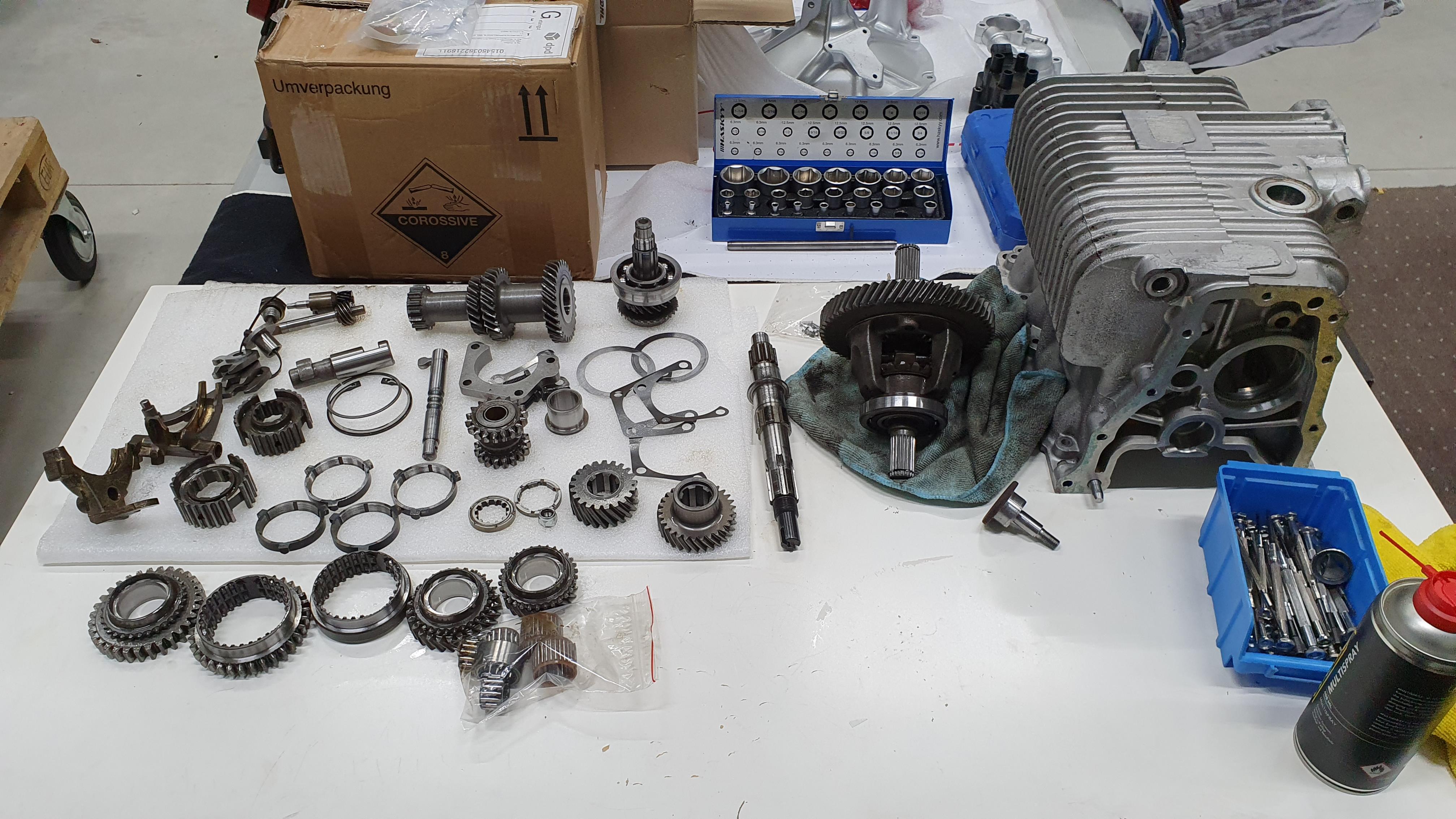 ich hab von meinem MPI das Getriebe nun komplett zerlegt, da so ziemlich alle Gummidichtungen zerbröselt waren udn mir der Zustand des Getriebes leider nicht bekannt war.